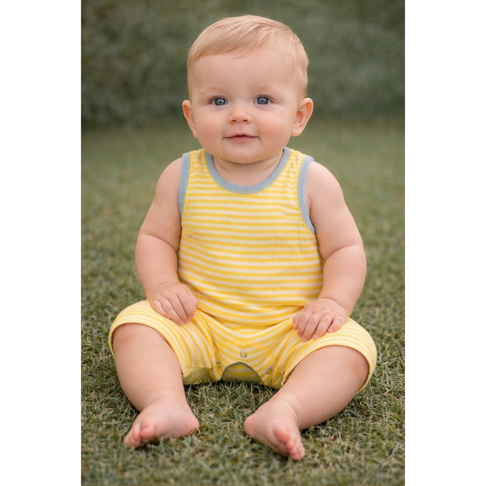 Baby Gap Yellow White Stripe Sleeveless Summer Romper One Piece 3 6 M VTG Y2K