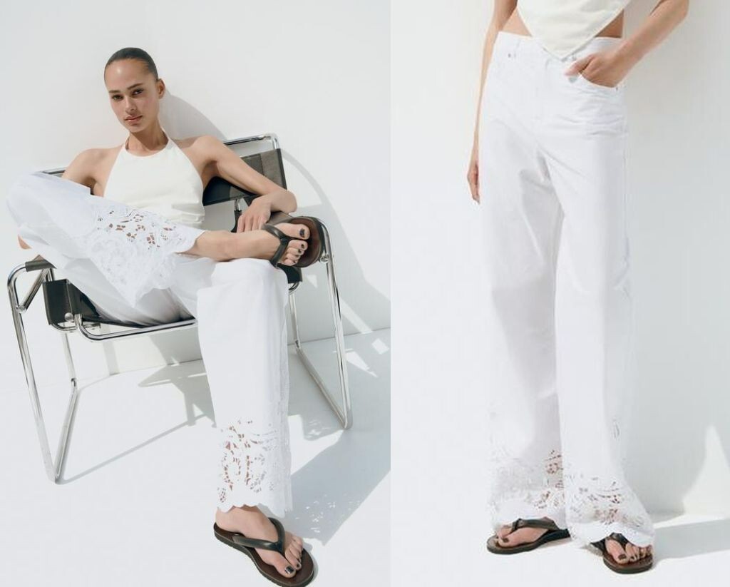 $79.99 Zara Embroidered Straight Leg Cotton and 47 similar items
