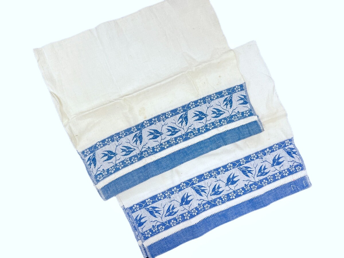 2- 1920s-40s Cannon Antique Hand or Washstand Towels Blue Birds Damask- 17x30 - have Cannon label, a pair and they seem unused or barely. No stains, or holes, and are crisp, maybe never washed?