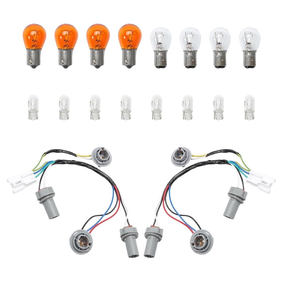 2 Packs Tail Light Lamp Wiring Harness Socket Holder & 16 Bulbs Compatible with
