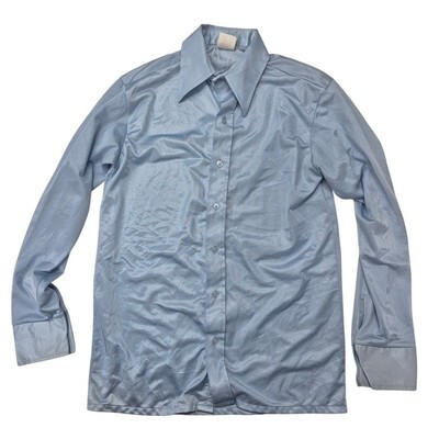 Vtg 70s Sears Put On Shop for the Teen Male Blue Satin Button Up Disco SHirt S