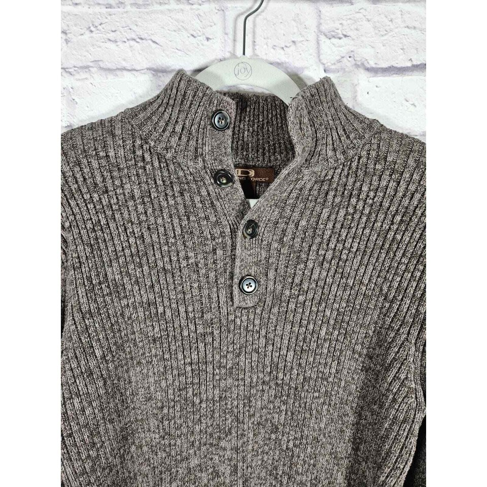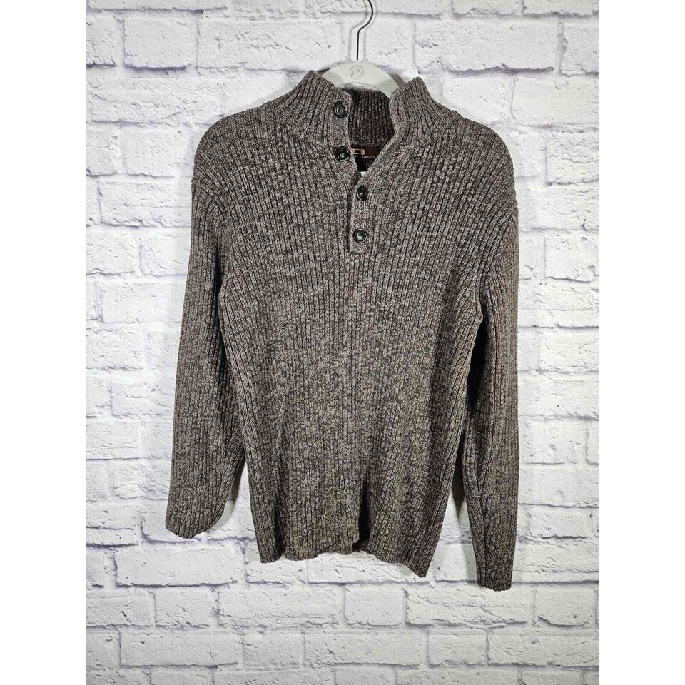 Driving Force Men’s Ribbed Pullover Sweater 1/3 Button Mocha Brown Size Medium