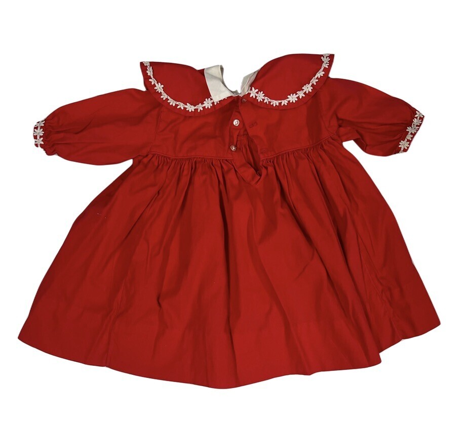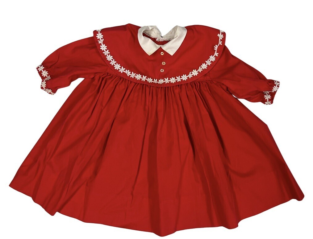 VTG 1950s Red Girl Party Dress Daisy Trim Applique Toddler Size 3T