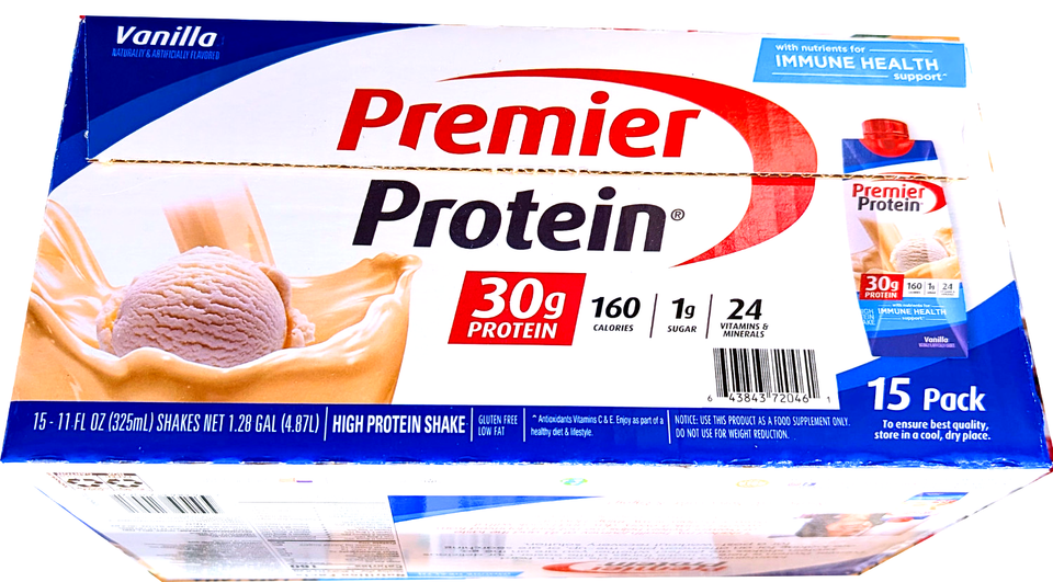 Premier Protein 30g High Protein Shake Vanilla 15 x 11 Fl Oz EXP 09/2026
