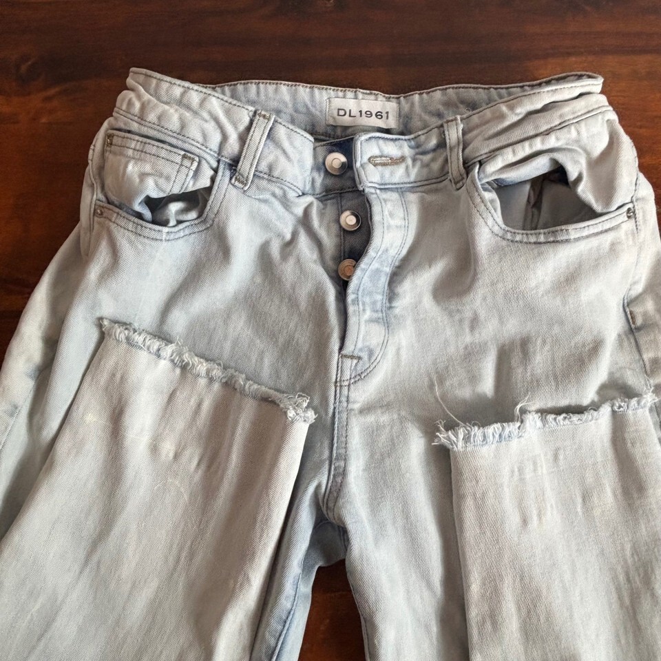 DL1961 Goldie High Rise Boyfriend Jeans Light Wash Whiplash Paint Splatter 29