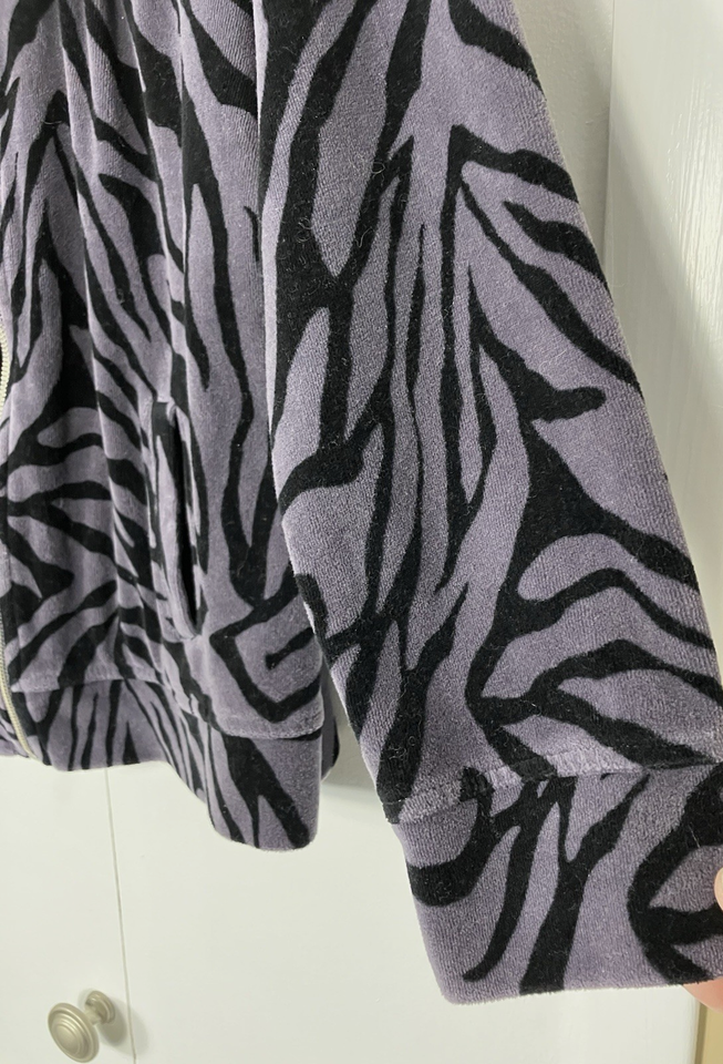 Vtg Style & Co Sport Women's Velour Purple & Black Full Zip Jacket Large