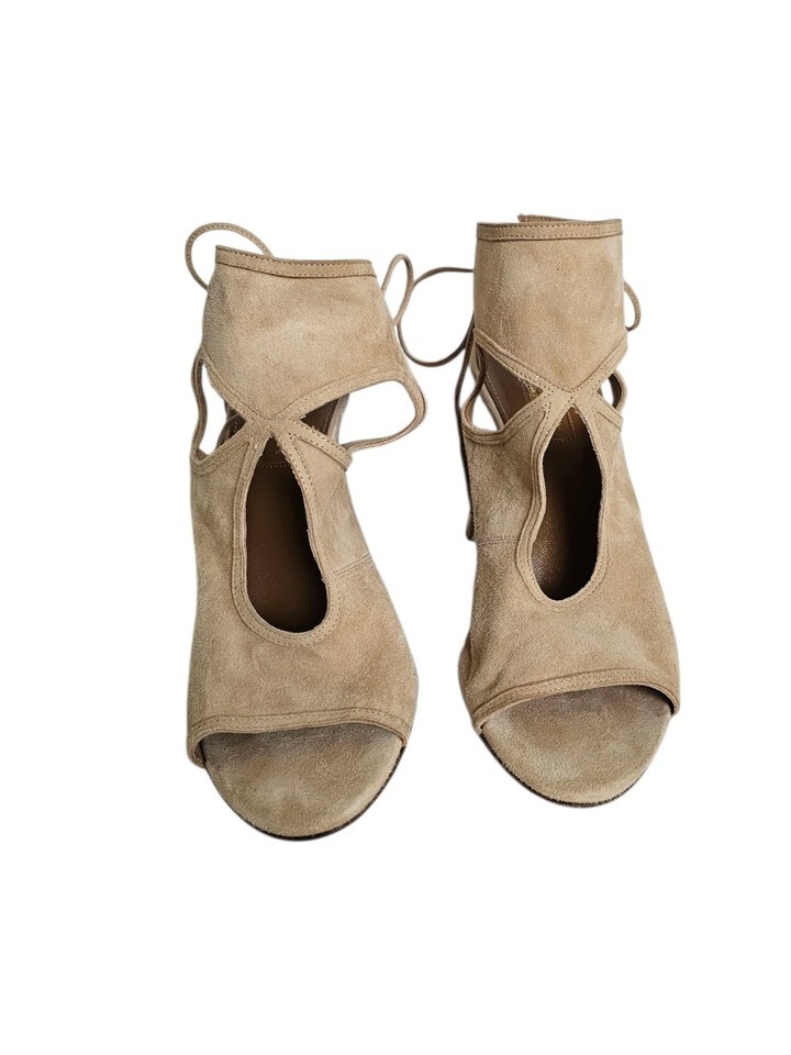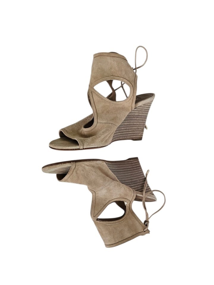 Aquazzura Sexy Thing Wedge Nude Suede Peep Toe Wedge Heels Sandals 38.5 8 1/2