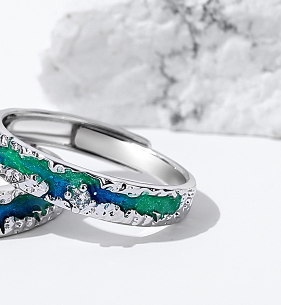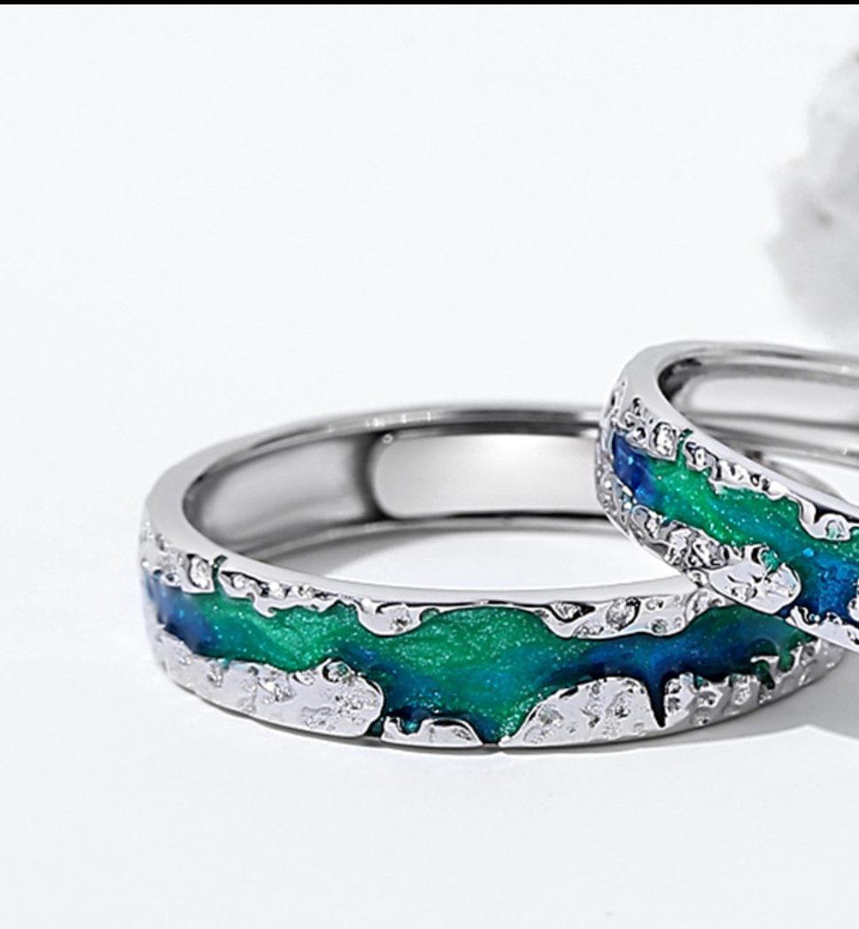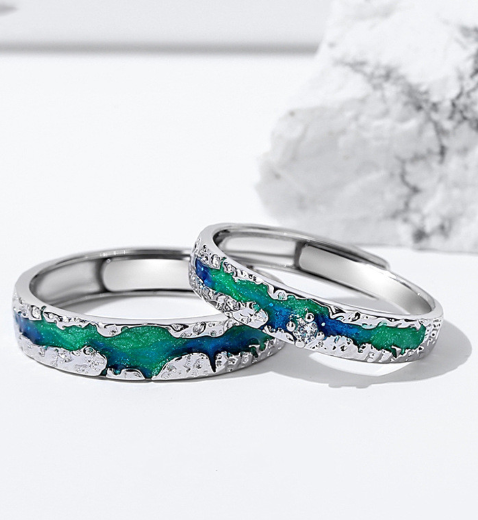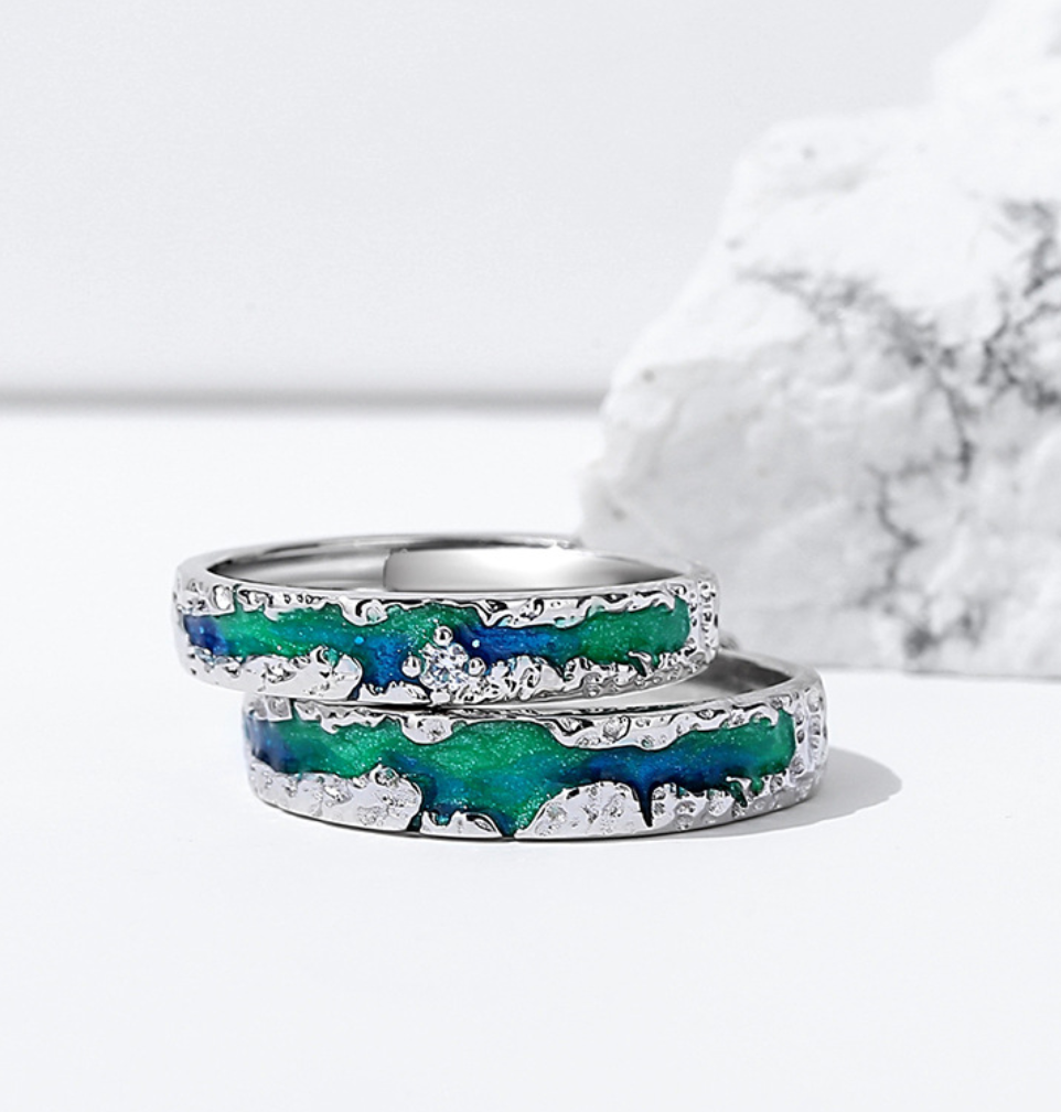 Couple Ring Stainless Steel green Crystal Bands