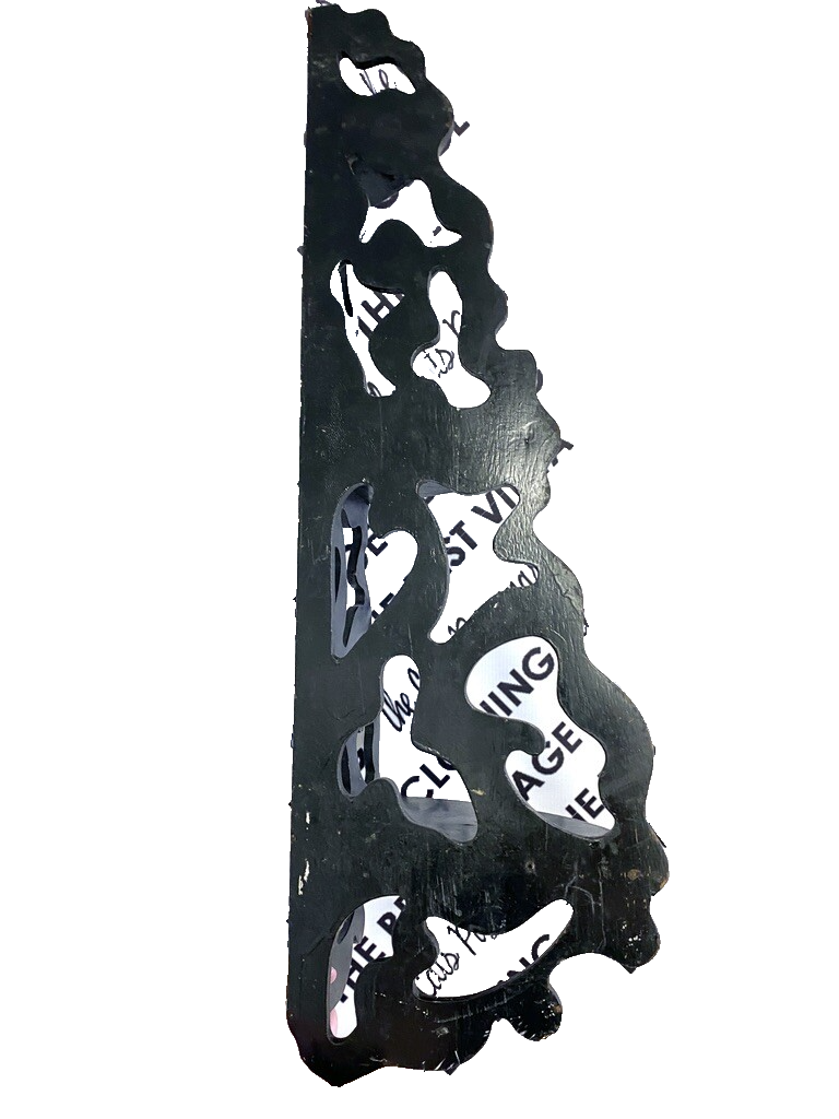 Antique Victorian Wood Fretwork Motif Corner Shelf Wall Hanging Black Painted