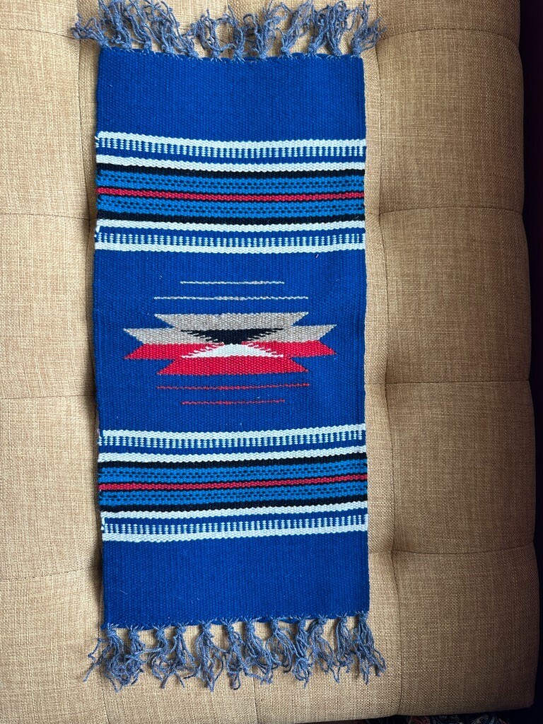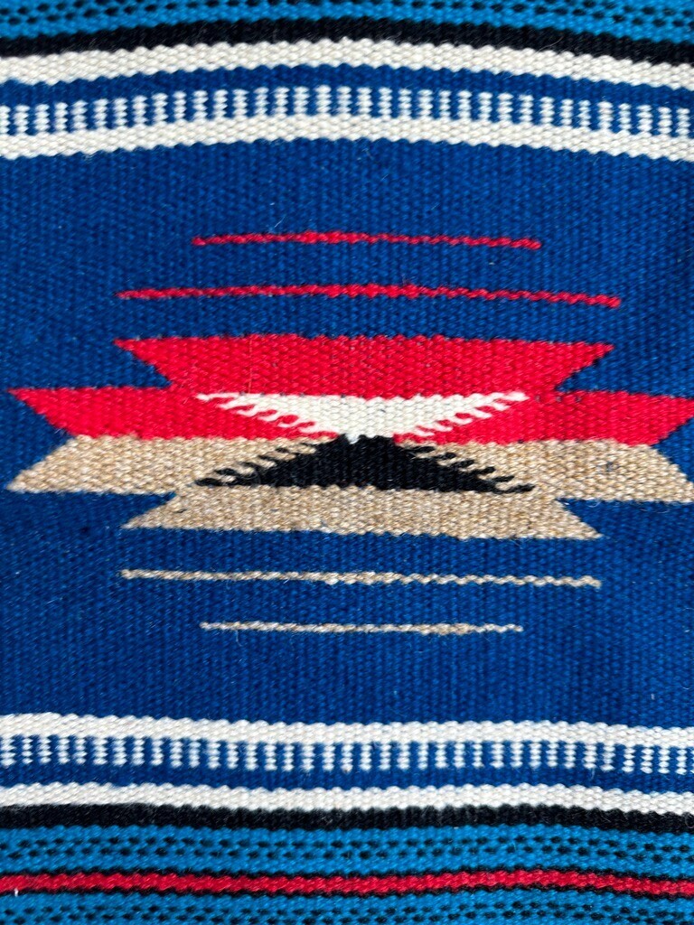 VTG Antique Chimayo Weaving Miniature Rug Southwest NEW MEXICO 20"x9" Turquoise