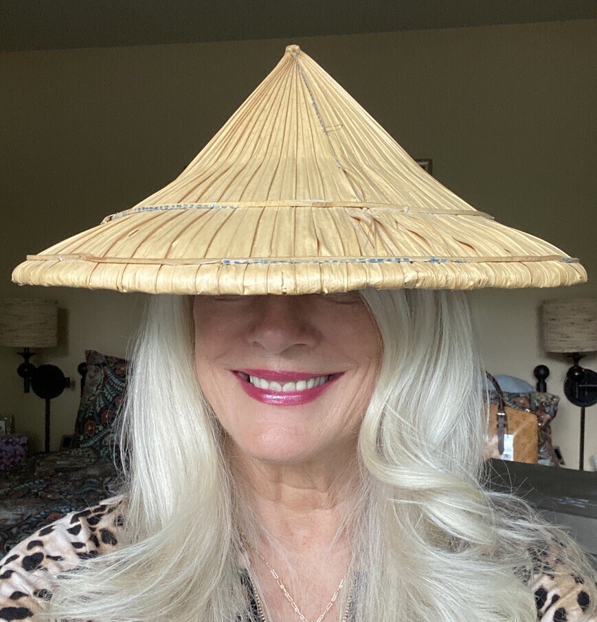 Vintage Hand Woven collectible Oriental coolie hat 15 x 7.5 in