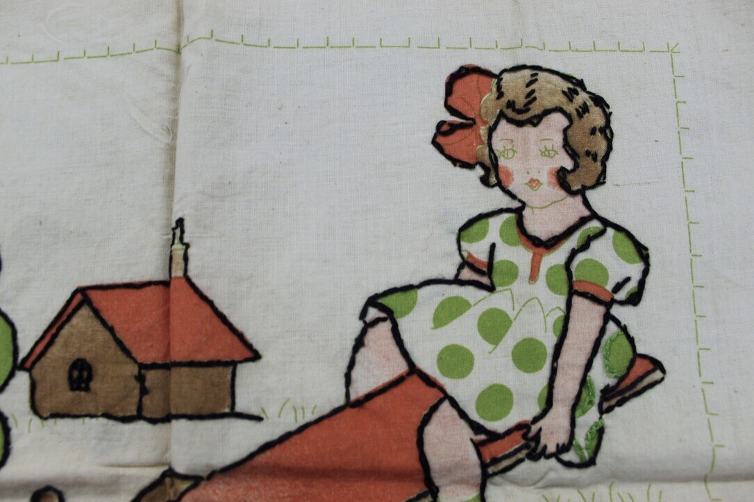 VTG Embroidered Crib Pillow # 875 1930s JBK Co Children on See Saw 16.5" x 13"-Just needs finished, its mostly done, and really could be framed as is, adorable. The measurements are about the framed size, or finished size- it's bigger than that but leaving room for sewing seams.