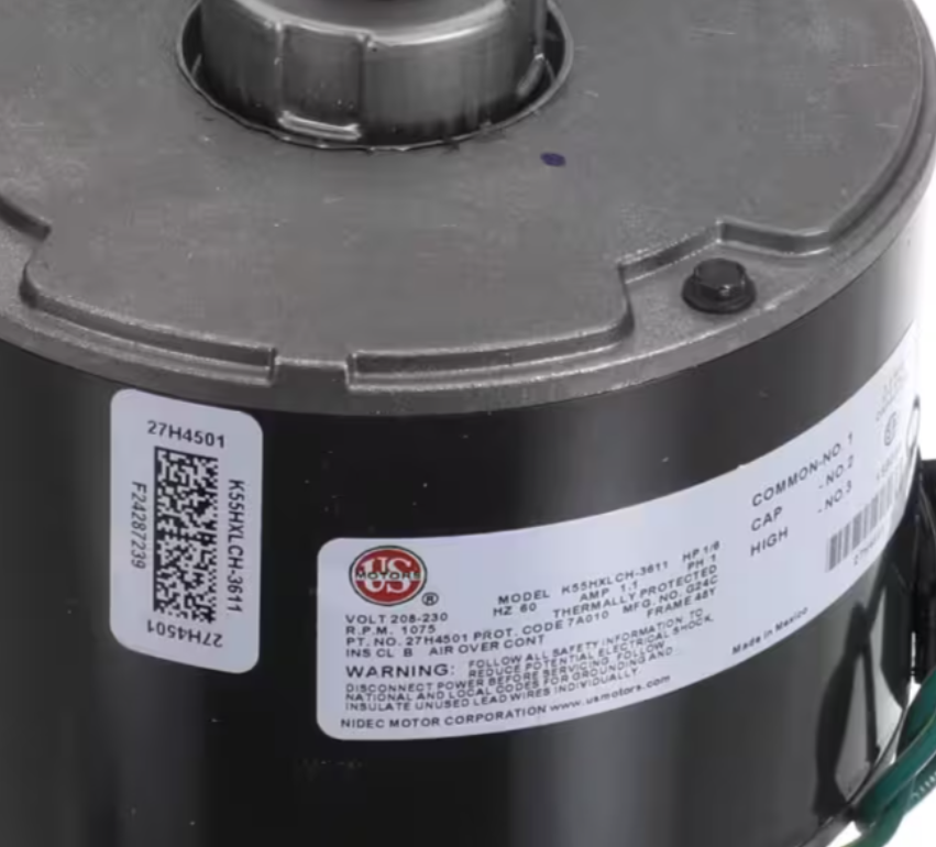 The Lennox K55HXLCH-3611 / 27H4501 Condenser Motor is a reliable OEM replacement motor designed to deliver consistent airflow and efficient heat exchange in HVAC condenser systems. Operating at 208-230V, single phase, 60Hz, this motor provides dependable performance with 1/6 HP power and 1075 RPM speed. Built with a 48 frame, it ensures proper fitment and long-lasting durability, making it an ideal solution for maintaining efficient system operation.