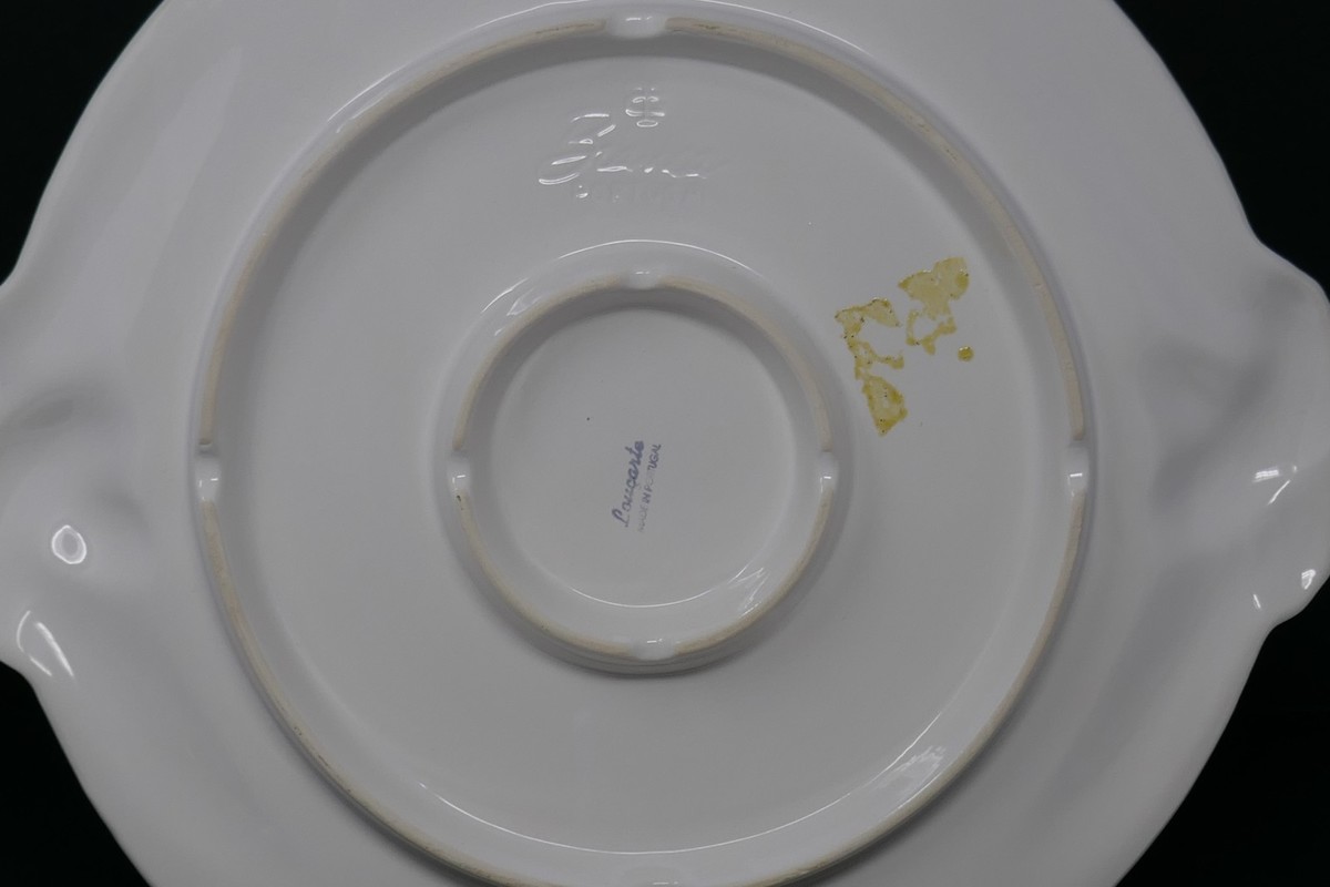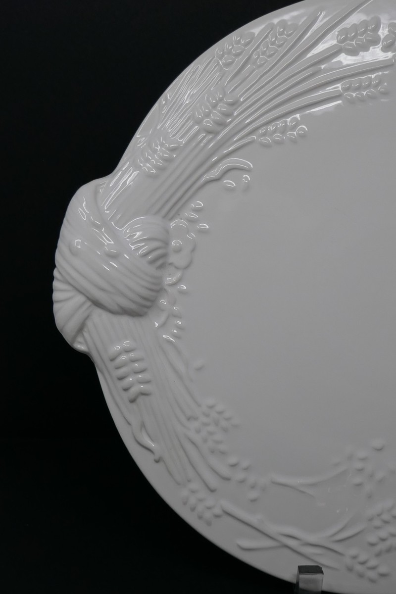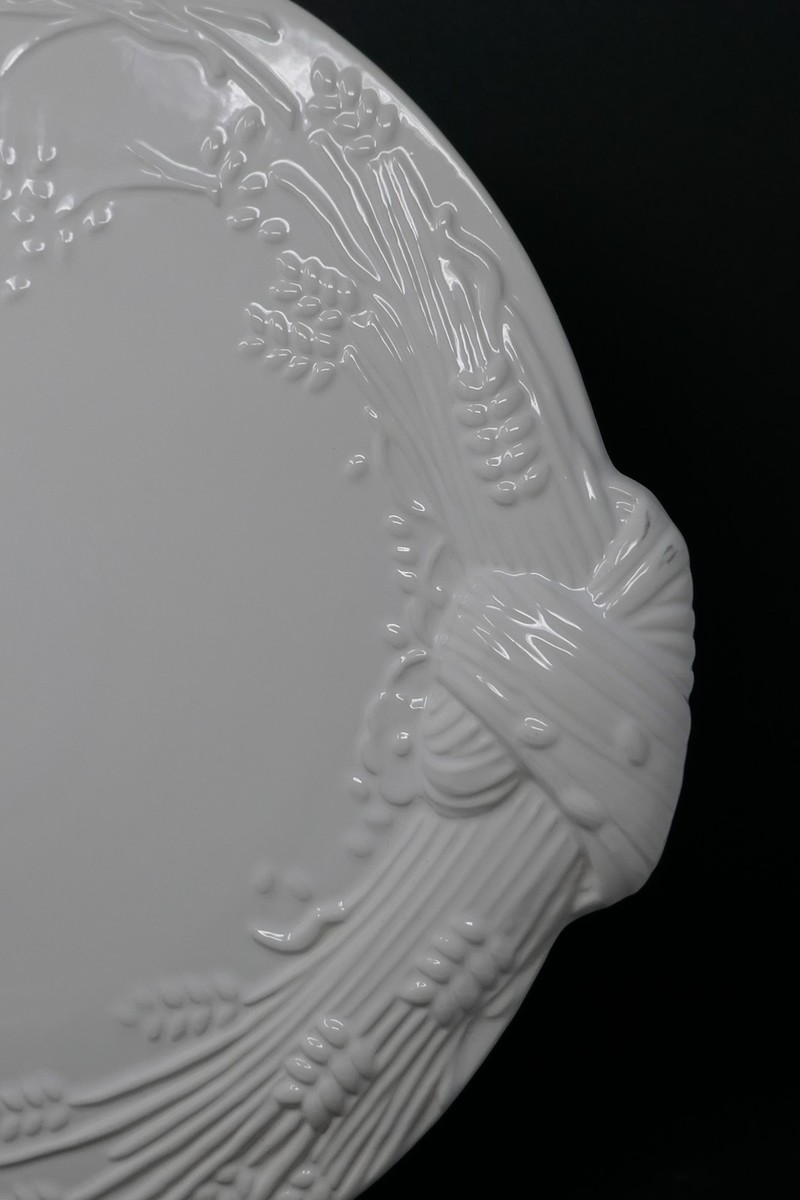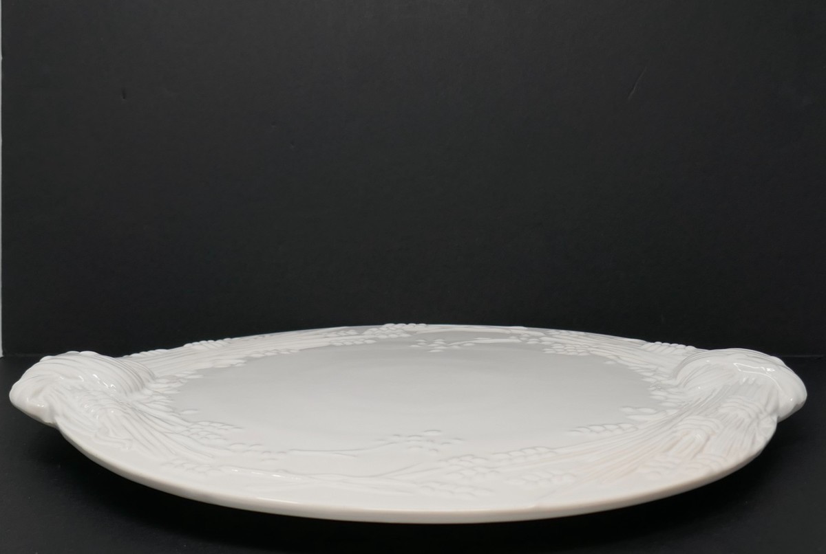 The Loucarte Bianca Serving Cake Platter is a vintage ceramic dish made in Portugal. This measures approx. 14.5" wide with the handles with no chips, cracks or repairs. One handle does have a scuff. The white color, classic design, and production technique of pottery make it a timeless piece that can be used for years to come.