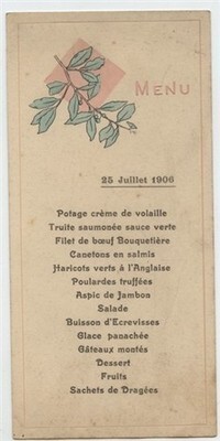 1906 French Restaurant Embossed Menu Card Madame Migeon