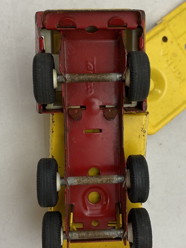 Vintage Metal Tonka Dump Truck Collectible Red Cab + Lowboy trailer