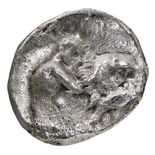 Reverse: Herakles kneeling, holding club, strangling the Nemean Lion.