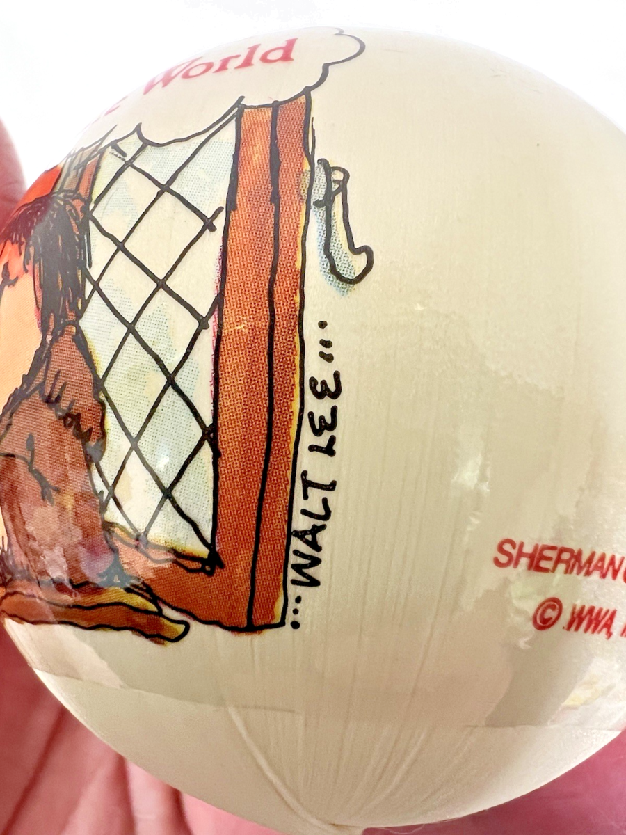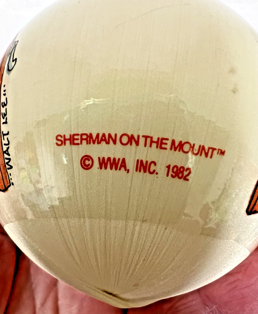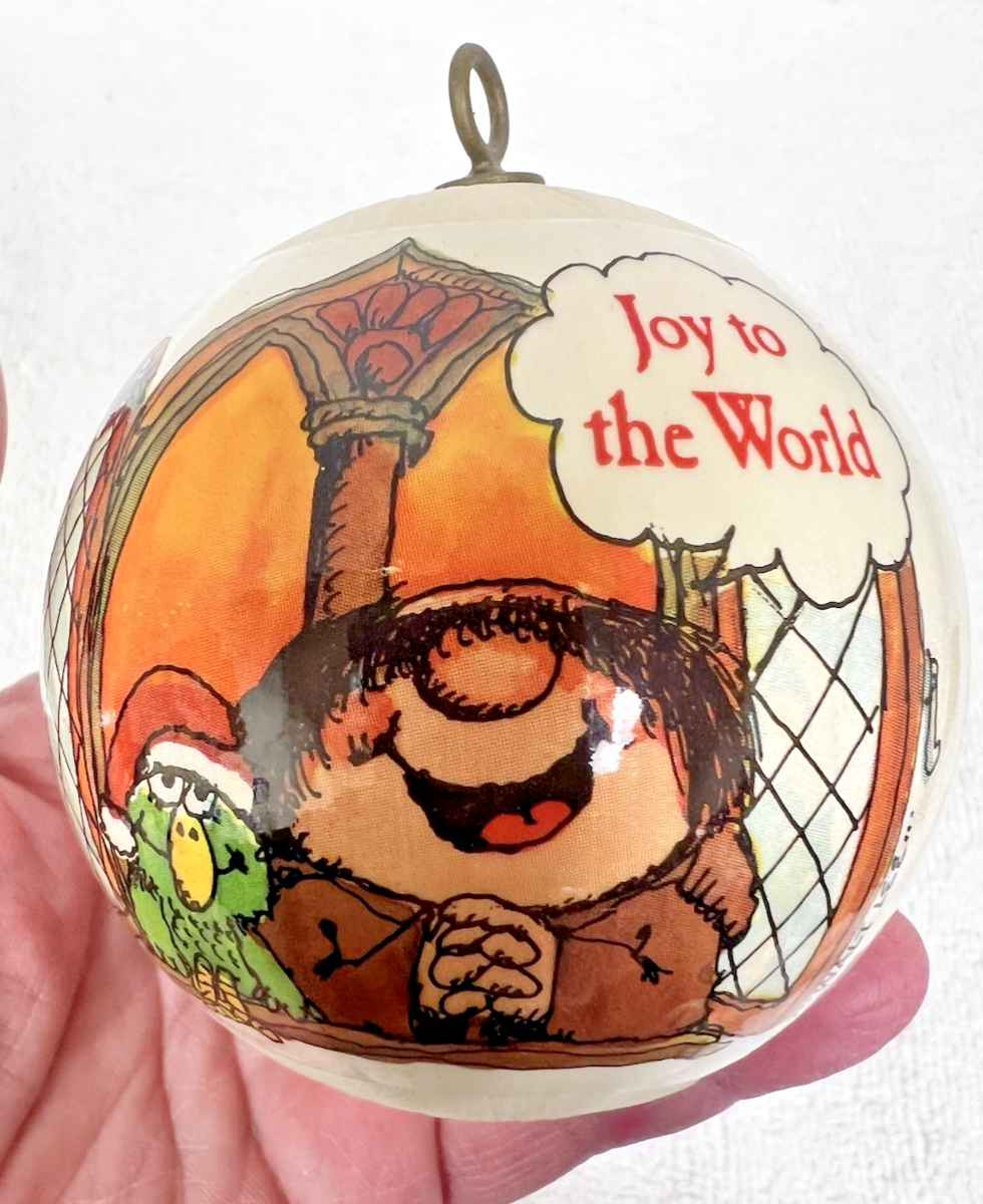 Vintage 1982 Monk Bird Deer Joy to the World Walt Lee Sherman on the Mount WWA Ball Christmas Ornament measures approx. 2 1/2" wide. Very nice condition, no snags, tears, clear bright colors. See pictures.