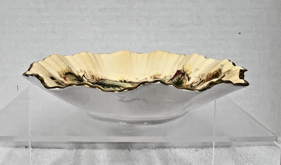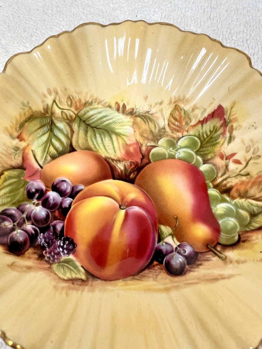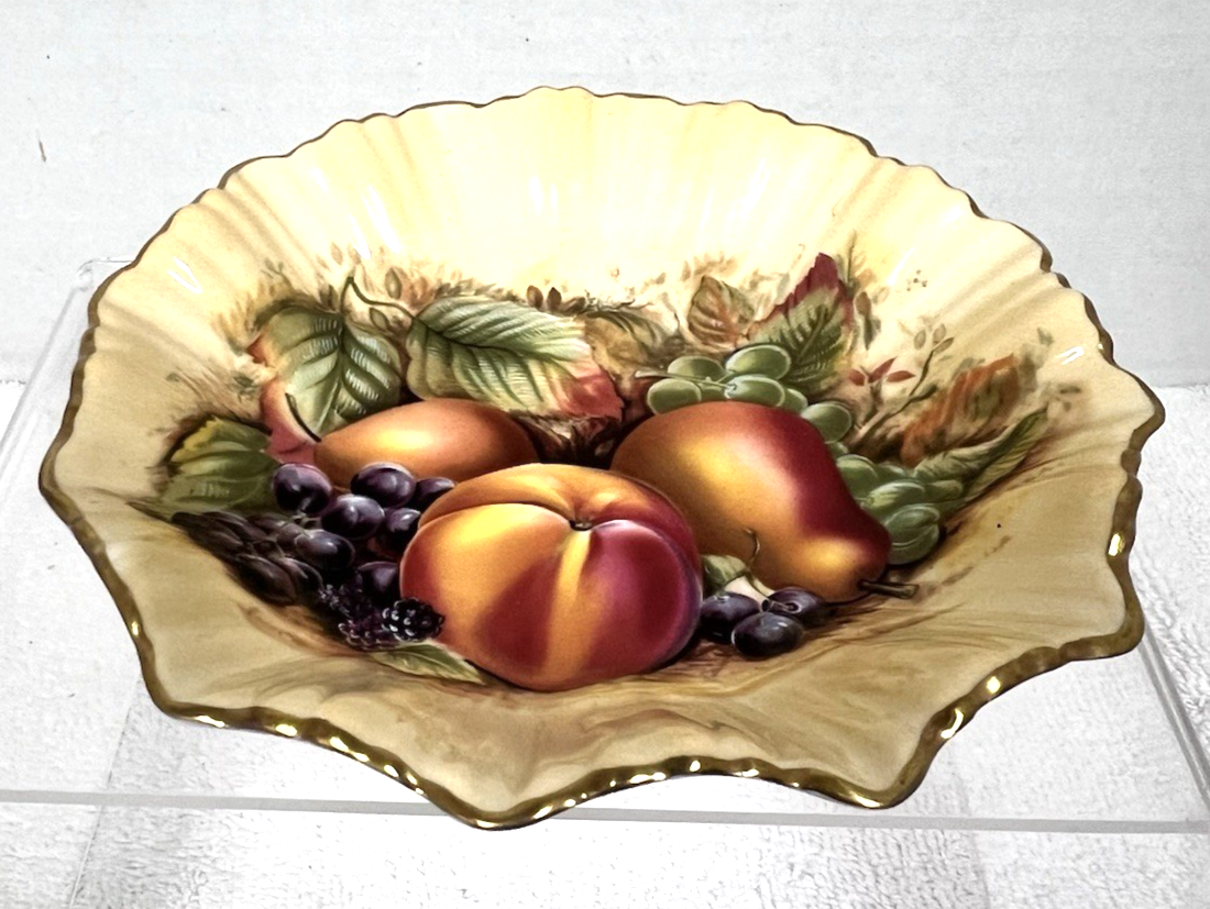 Vintage Aynsley Bone China Orchard Gold Fruit Pattern Fluted Candy Dish Bowl