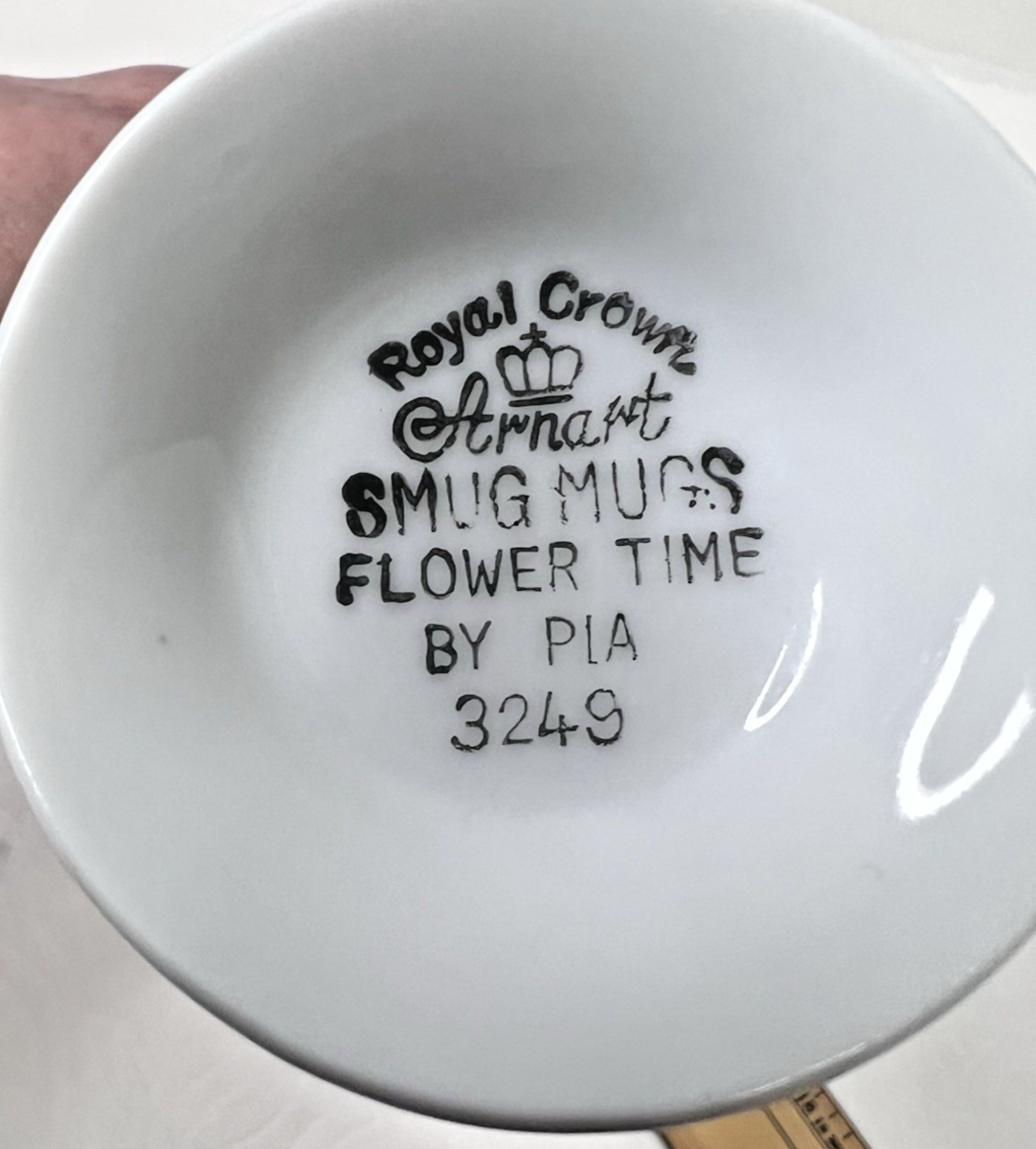 Vintage Royal Crown Arnart Smug Mug MCM Pedestal 60?s Tulips Flower Power In great shape colors are bright and fun no chips cracks or stains. It stands 4 3/4 and is 2 7/8 wo the handle