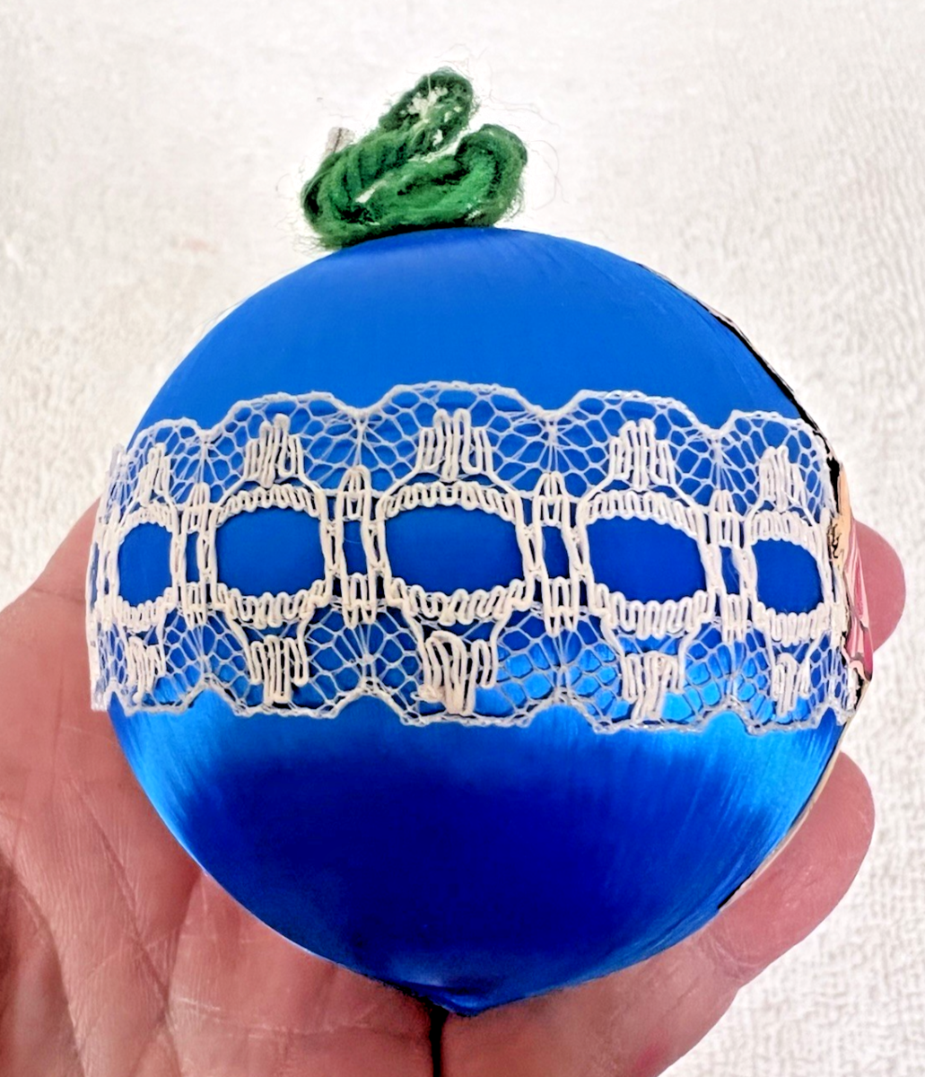 Vintage 1980's Handmade Blue Satin Lace Vintage Children Satin Ball Ornament 2"