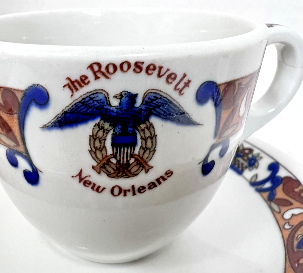 Vintage Roosevelt Hotel New Orleans Blue Eagle Demitasse Cup Saucer Shenango