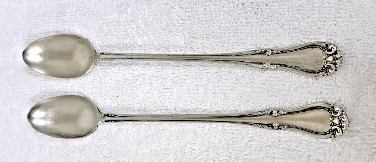 2 Antique Oneida Kenwood Scroll Design Silverplate Iced Tea Spoons No Mono