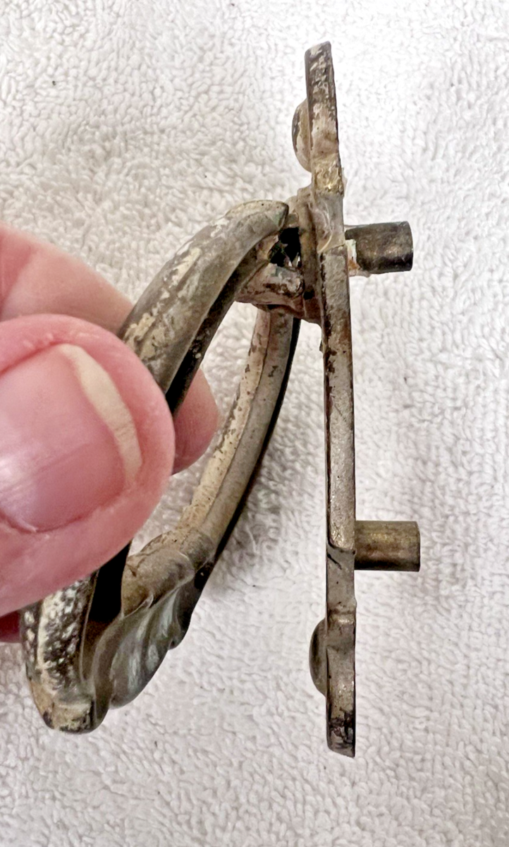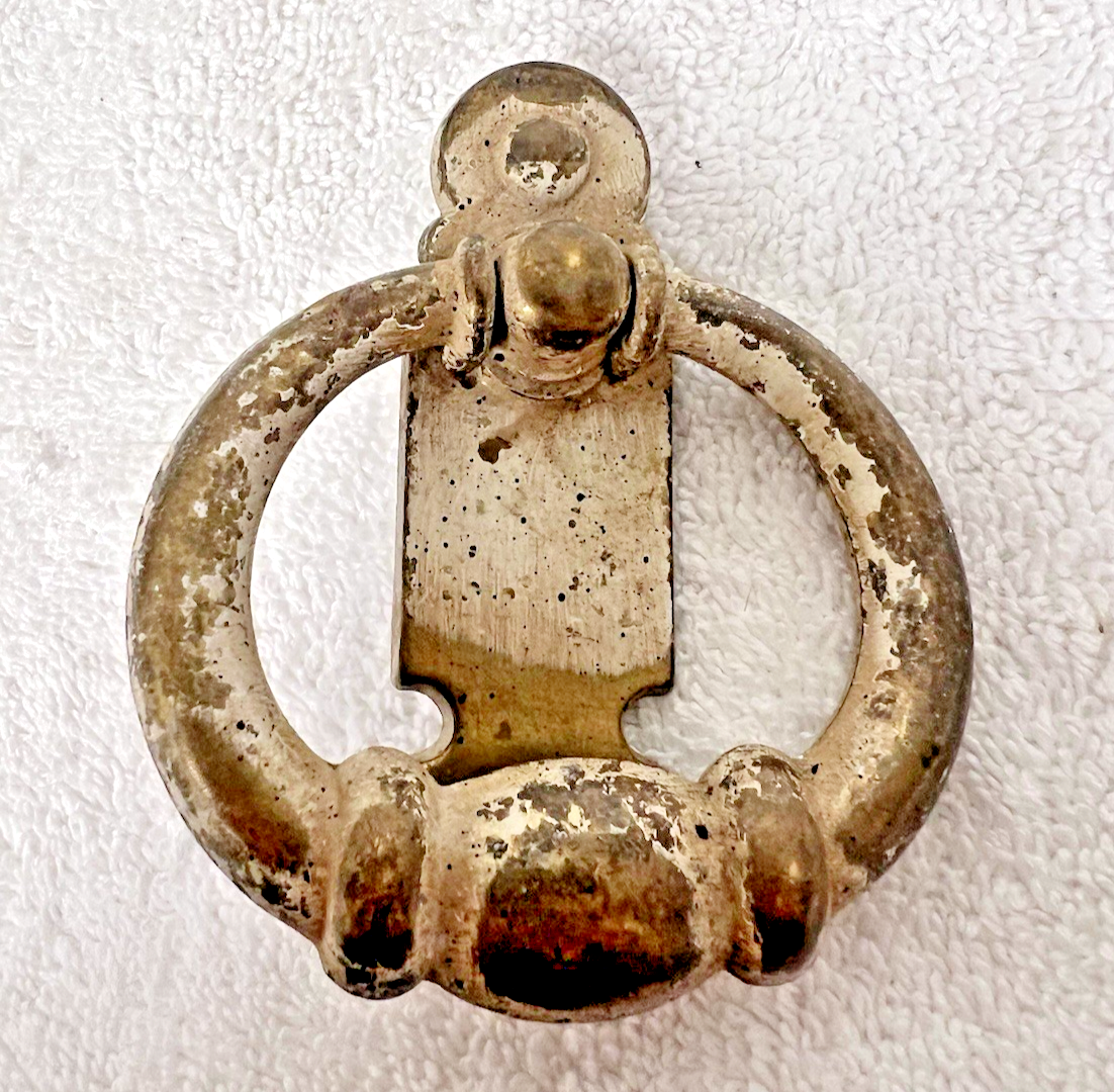 Vintage Great Patina Worn White Painted Brass Tone Ring House Door Knocker measures approx. 2 3/4" wide and 2 1/2" long. Neat looking knocker with back plate good used condition. See pictures.