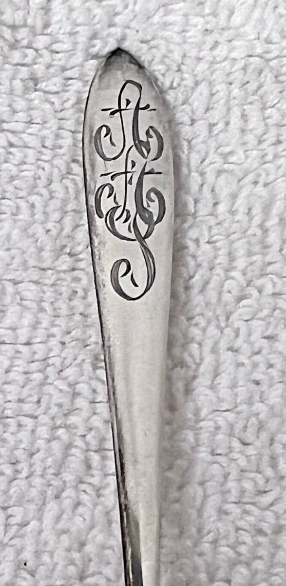 Patria Sterling INTERNATIONAL SILVER 1918 Olive Spoon Pierced 5 3/4 Handle AAS or AAL Monogram