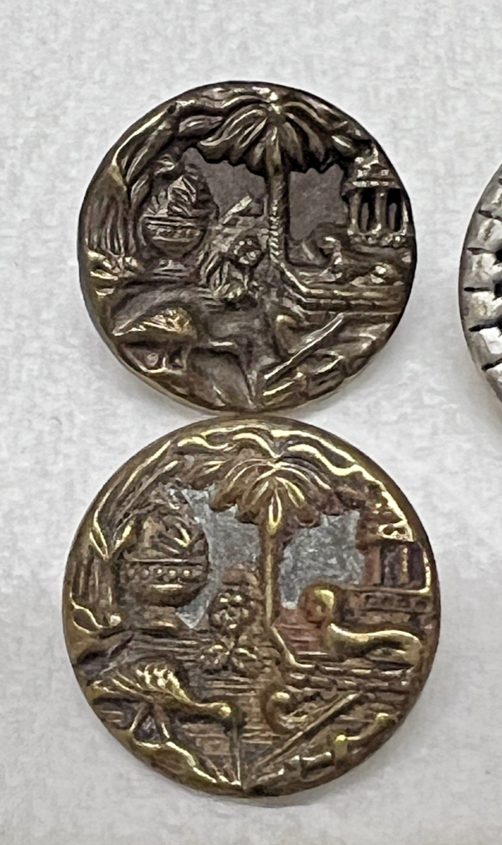 5 Vintage Metal Buttons w Buildings Birds and similar items