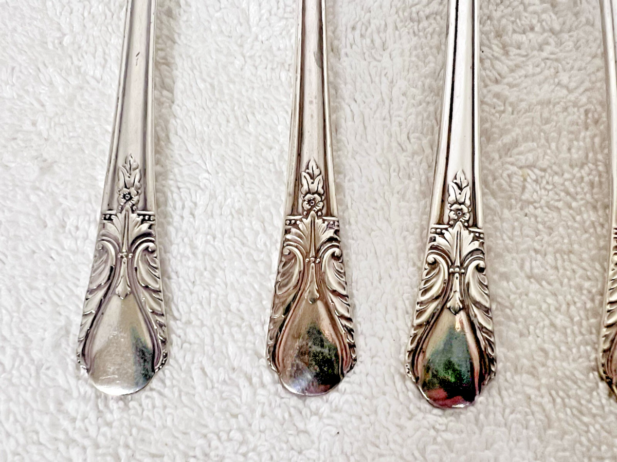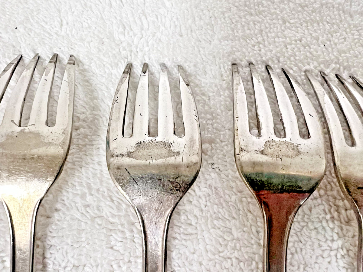 Vintage International Silver Avalon Cabin Silverplate Grille Forks 7 1/2" Set of 6. Very good used condition grille forks, no monogram, no dents, some signs of use. Might need cleaning. See pictures.