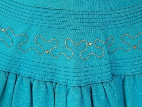Authentic VTG Rayon Faille Skirt Turquoise S Dropped Waist Rhinestones