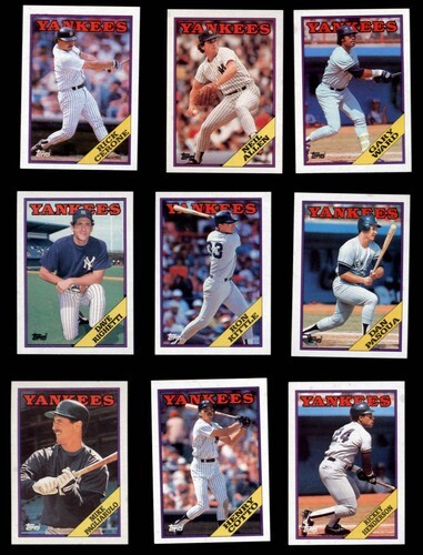 as Found BASEBALL CARDS lot of NINE * 1988 TOPPS all New York YANKEES