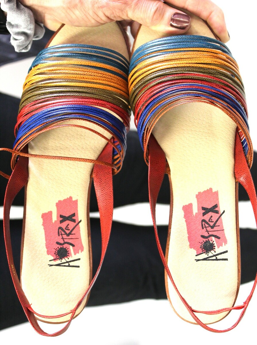 Vintage 80's 90's Abstrax Rainbow Linguini Sandals Women's 10M Spice NIB