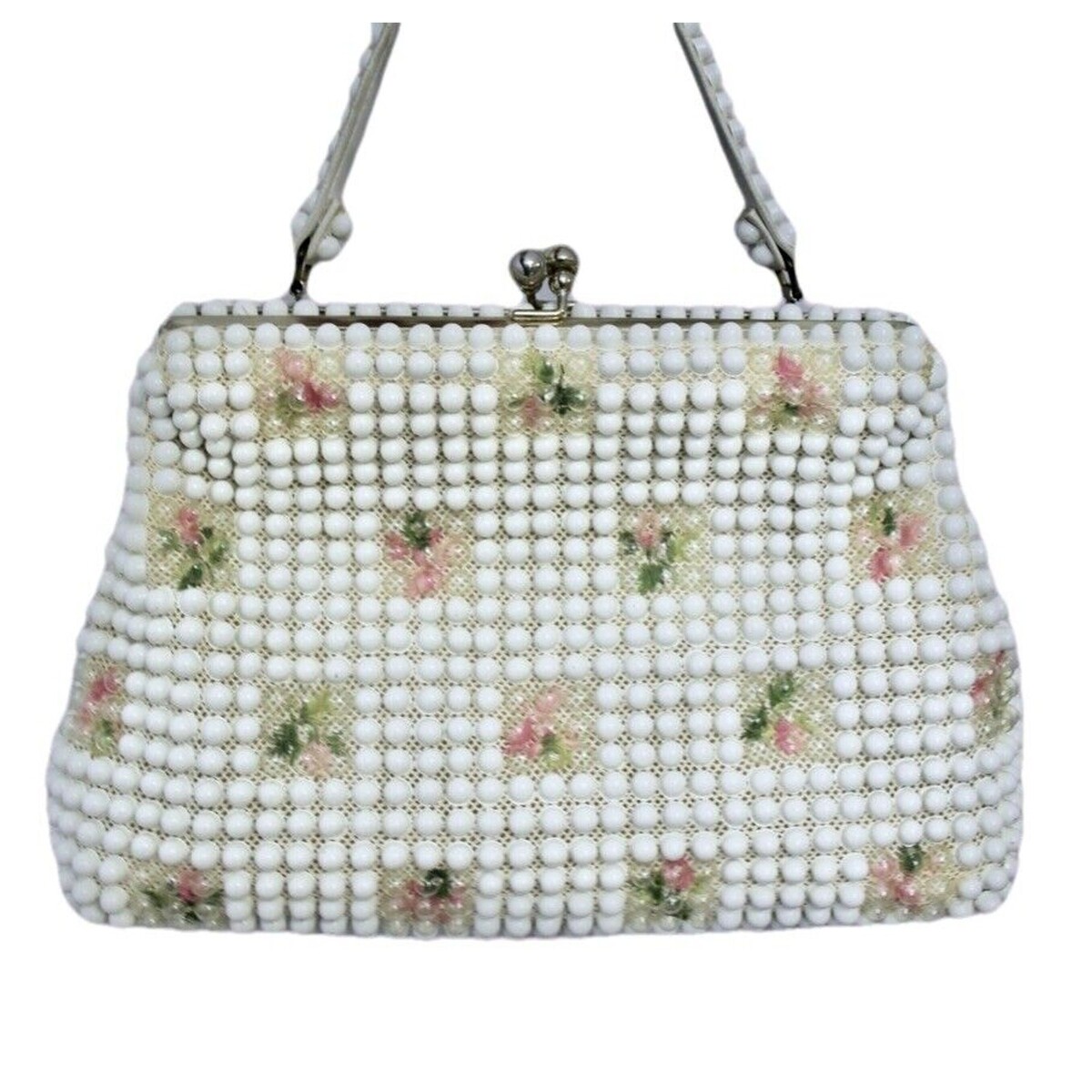VTG 1950s Grandee Bead USA White Floral Beaded Handbag