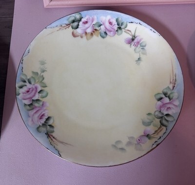 4 Vintage Blue Pink Yellow Mismatched Wall Plates Collage Display Floral Cottage