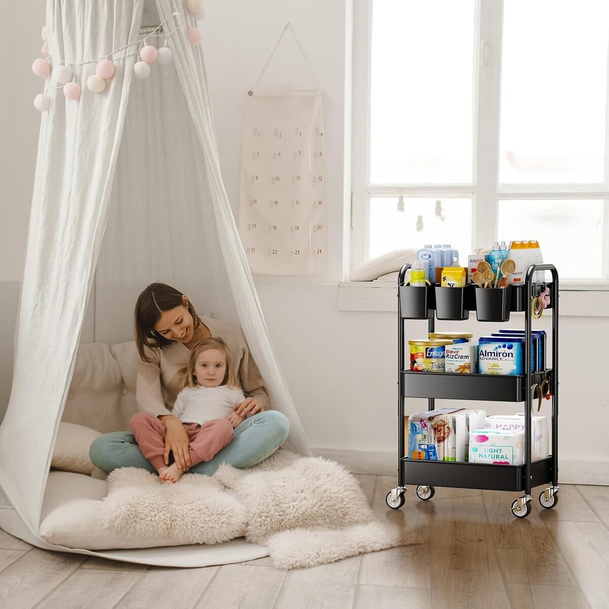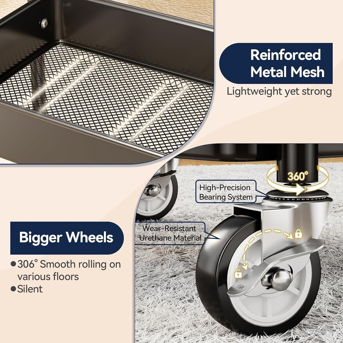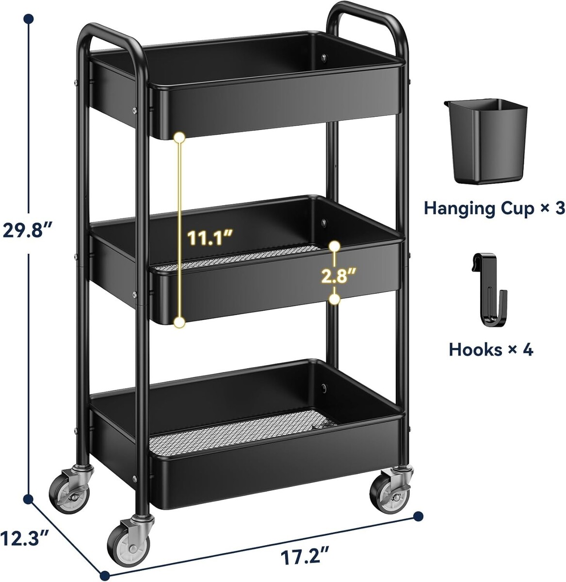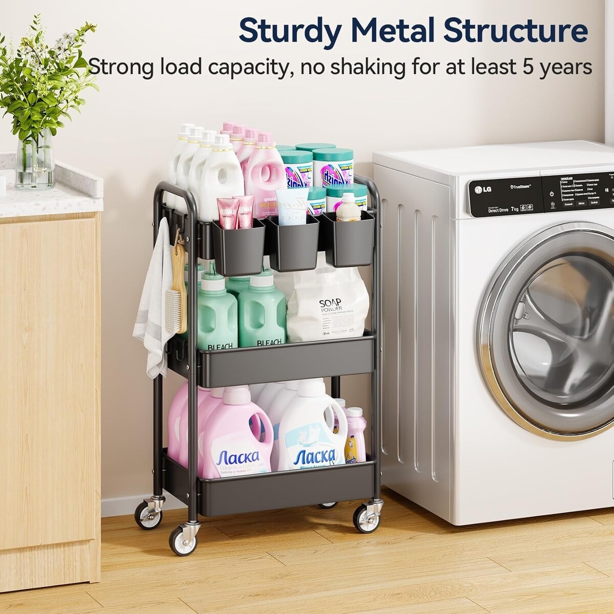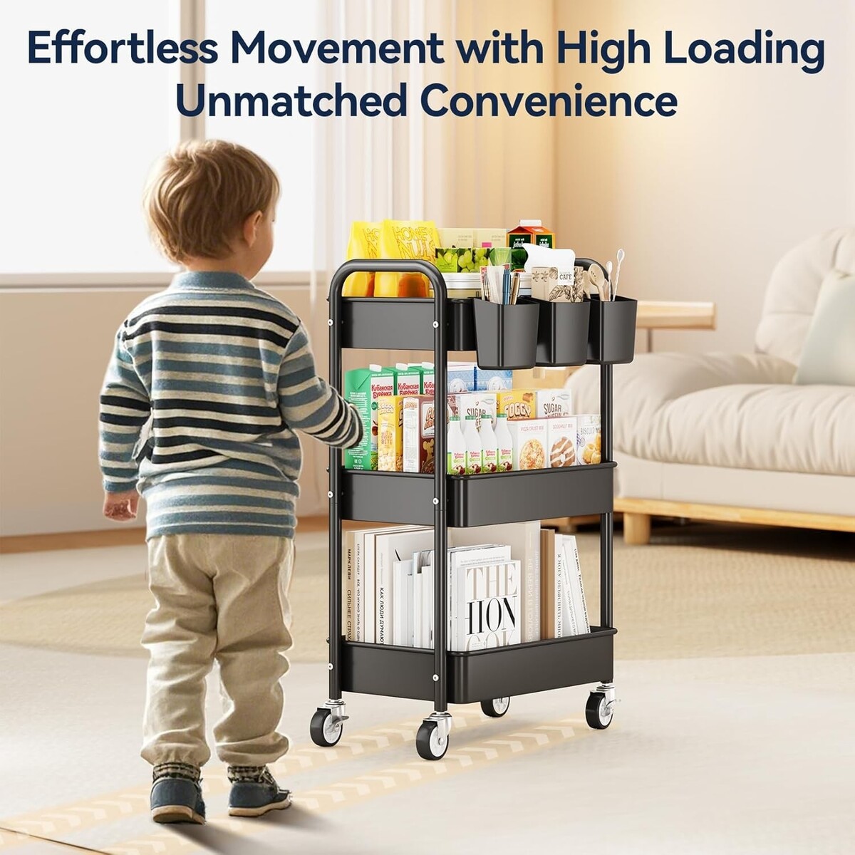 Durable 3 Tier Rolling Cart - Lightweight with High Load Capacity for All Spaces