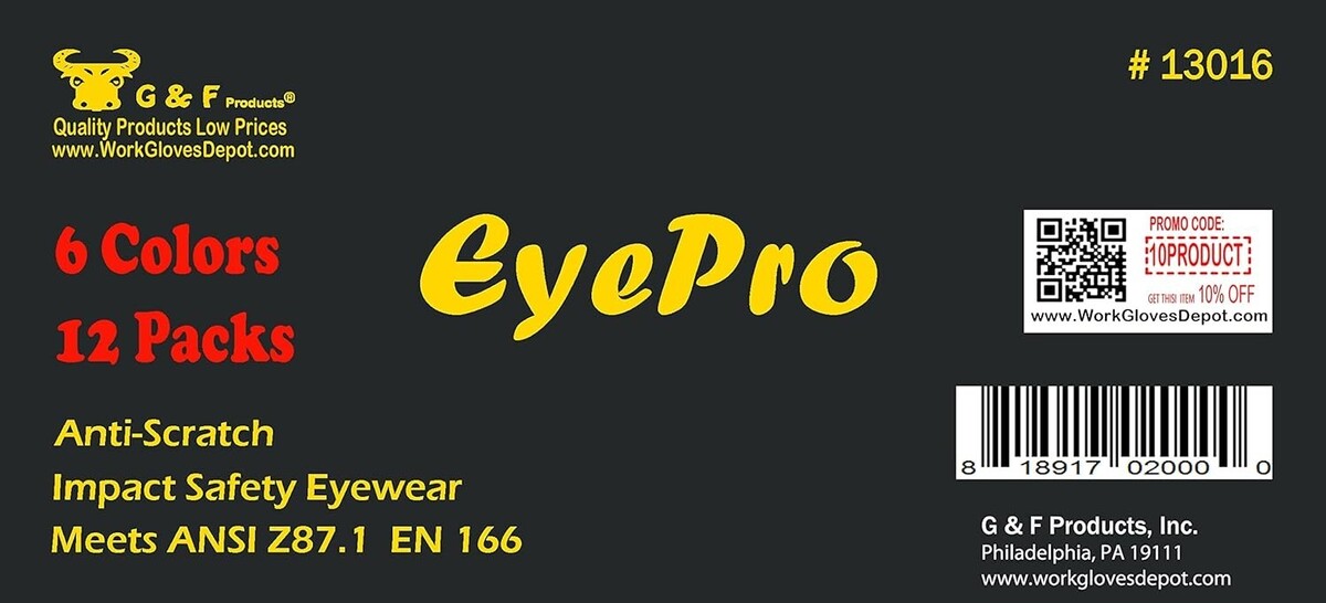 Durable EyePRO Safety Glasses: 99% UV Protection, Impact Resistance, 12 Pack