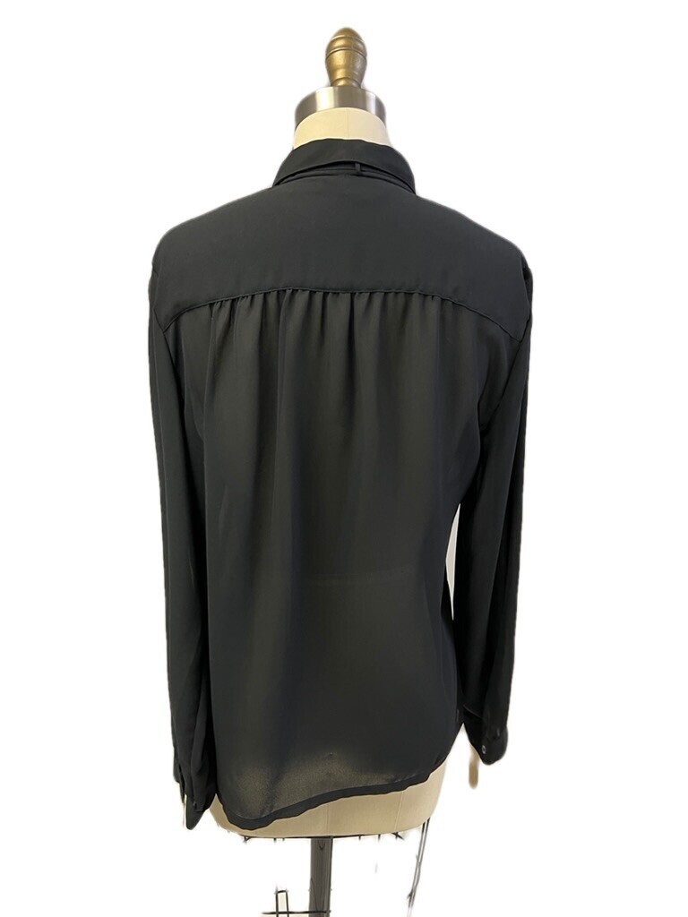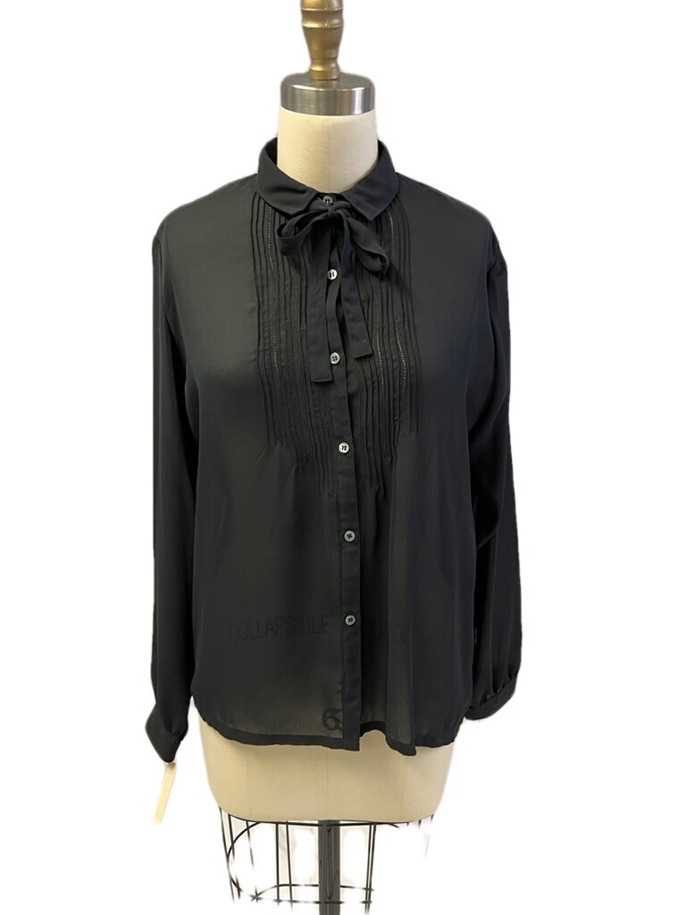 Chic Vintage 80s Lanvin Paris Sheer Black Blouse - Elegant Bowtie - Never Worn!
