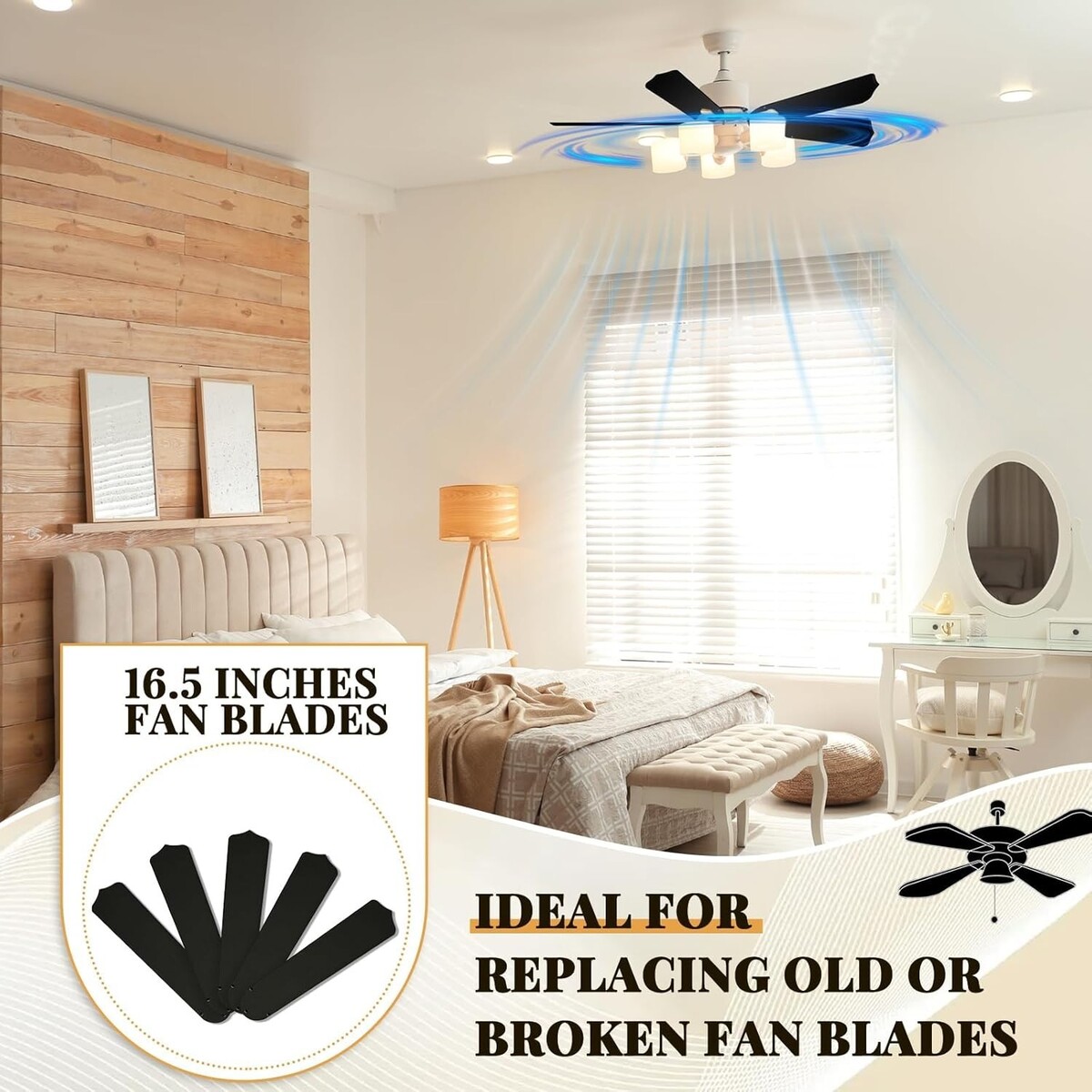 Aesthetics meet functionality in our stylish black replacement fan blades. Their contemporary design enables them to seamlessly integrate with various indoor and outdoor decor, enhancing the visual appeal of your space while delivering efficient airflow.