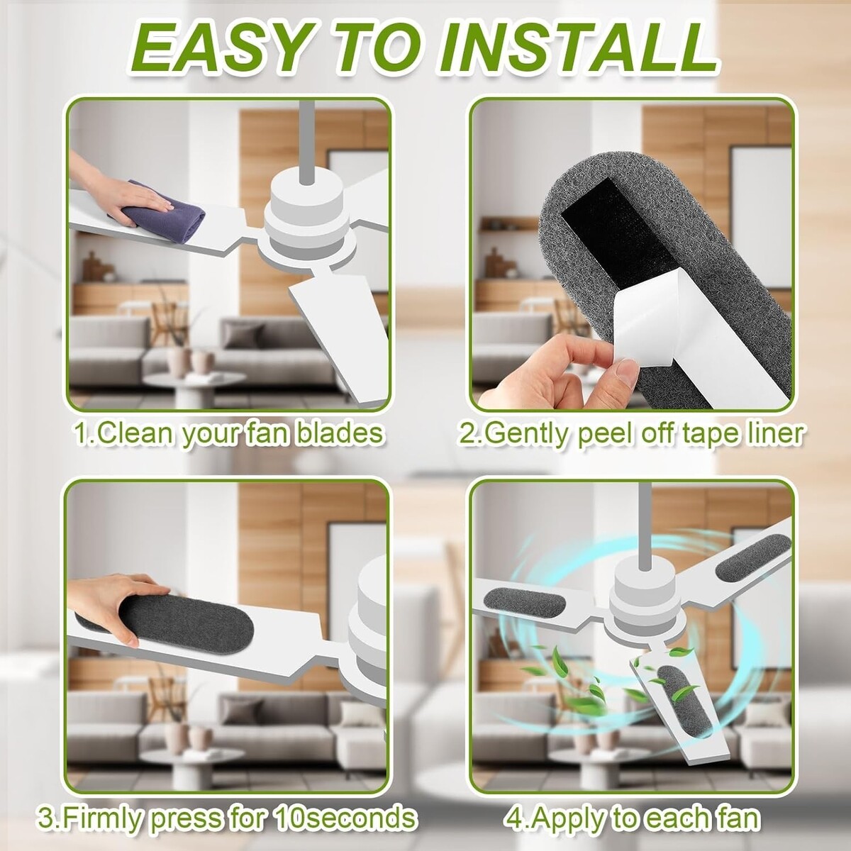 Quick installation process - simply remove the adhesive backing, attach to the fan blade, and enjoy cleaner air!