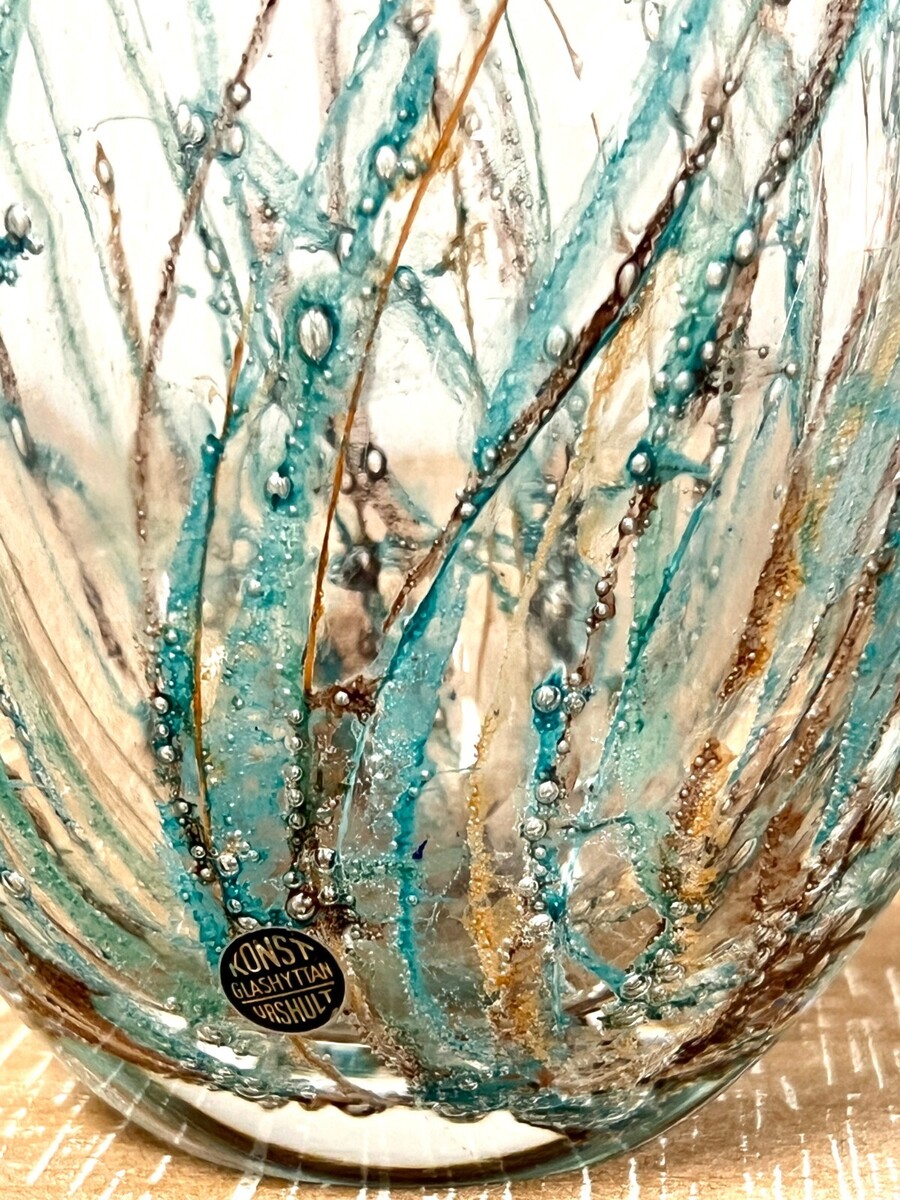 9" Art Glass Vase Sjogras by Goran Stroemgren Konst Urshult Sweden