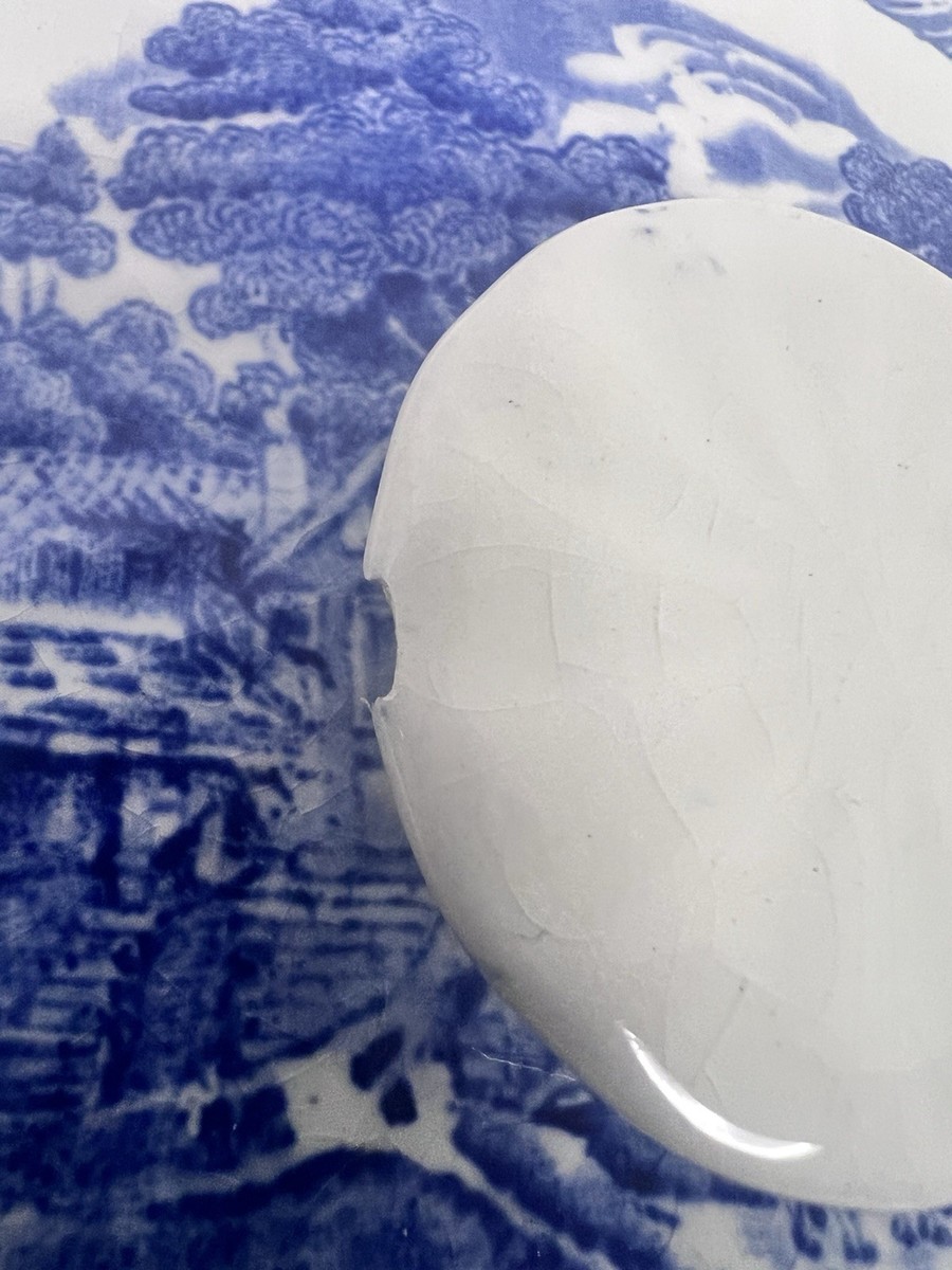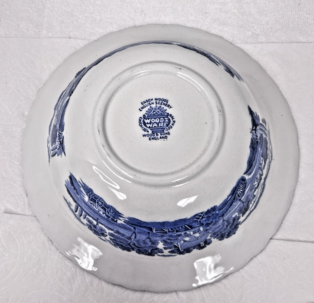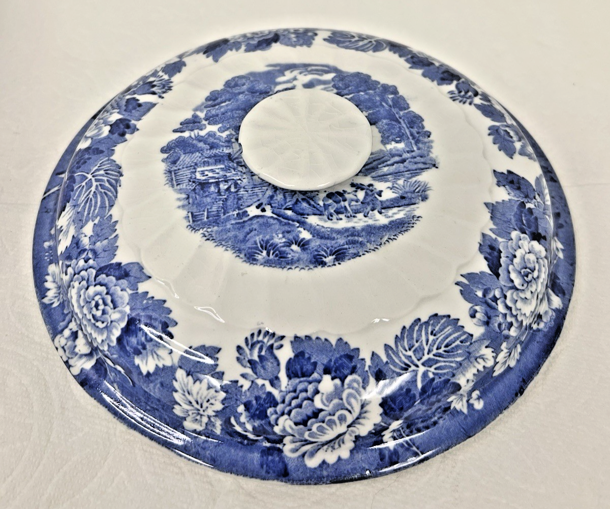WOOD SONS English Scenery Blue White Woods Ware Swirl Rnd Round Covered Vegetable the inner bowl has some yellowing also the lid handle has a small chip so please see all photos