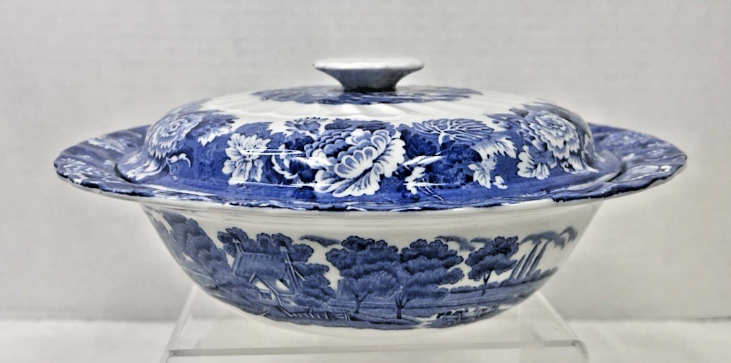 WOOD & SONS English Scenery Blue White Woods Ware Swirl Rnd Round Covered Vegeta
