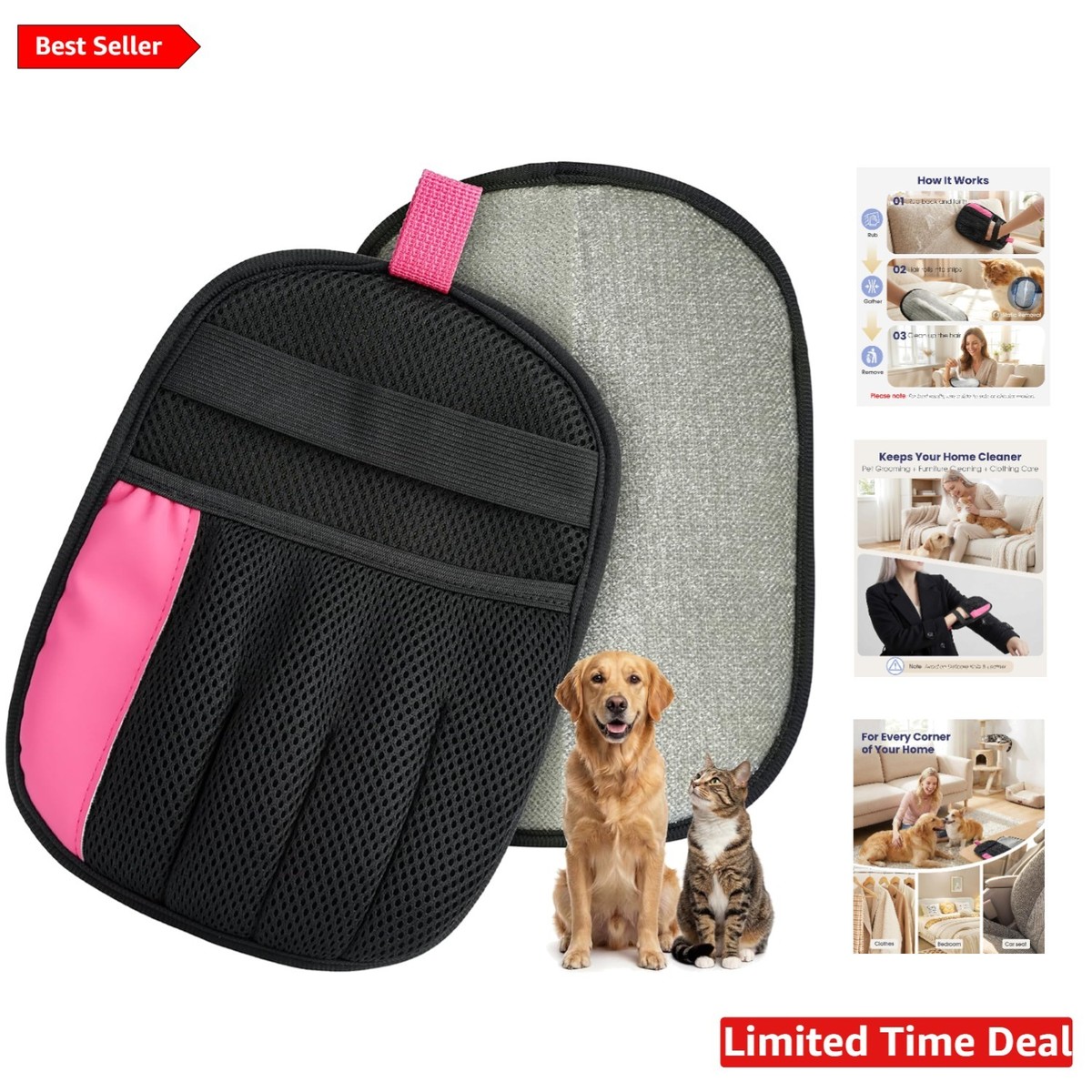 Reusable Pink Pet Hair Removal Glove - Effortless Cleaning Mitt for Fur Lint