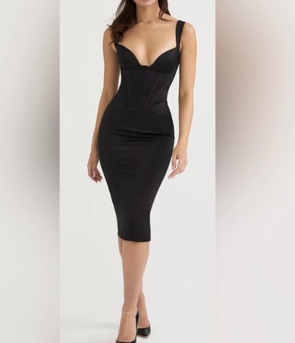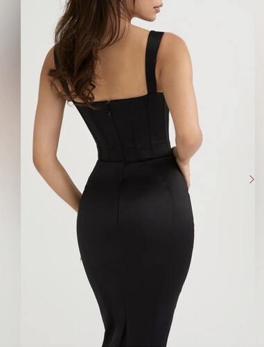 House Of CB London Fiorella Black Satin Corset Midi Dress Women’s Size XS