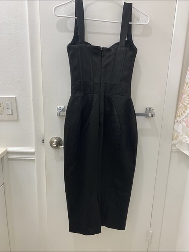 The House of CB London Fiorella Black Satin Corset Midi Dress in women's size XS is a stylish and sophisticated option for any special occasion. Made from luxurious satin fabric, this dress features a sweetheart neckline, midi length, and a flattering bodycon style. The black color and London theme add a touch of elegance, making it a perfect choice for those who appreciate high-end fashion. Perfect for a night out or a formal event, this dress is sure to make a statement and turn heads wherever you go. Preloved in good condition. The threading near end of zipper is a bit loose. See last pic. Hot and sexy dress. Great for date night, party, clubbing, going out, etc.