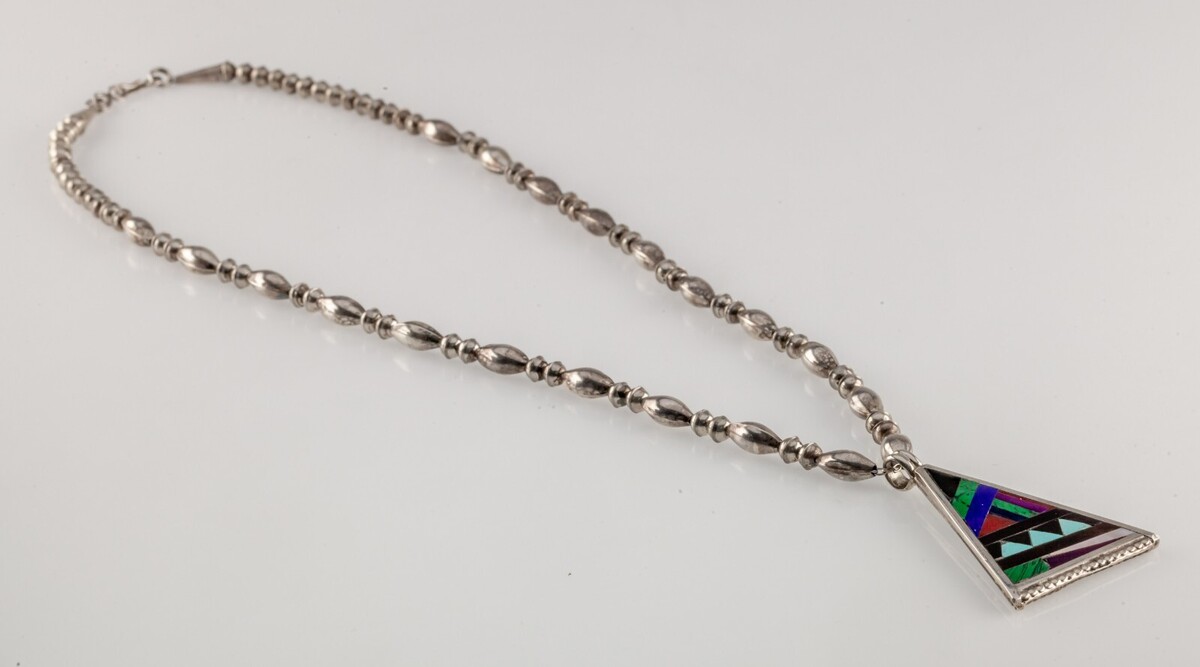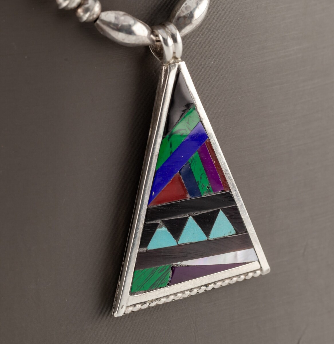 Gorgeous Sterling Silver Lapidary Inlay Pendant with Silver Bead Chain