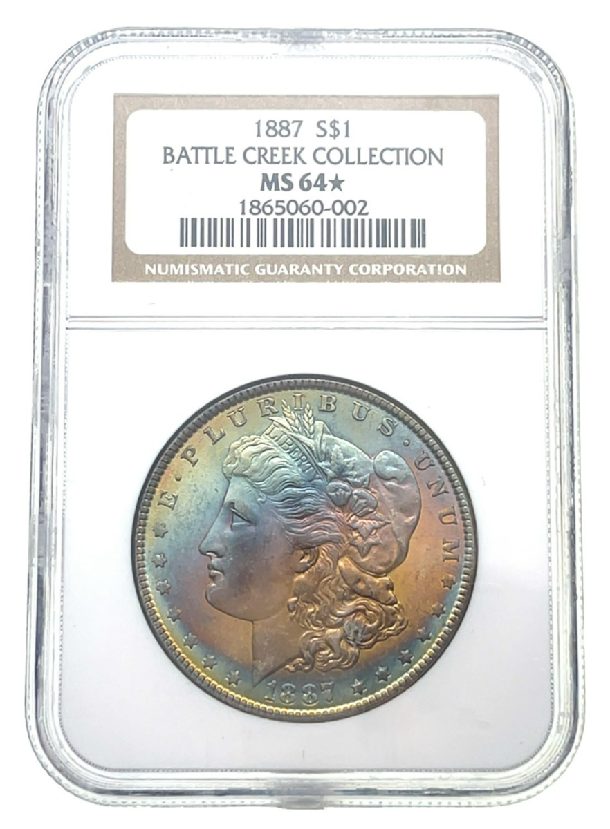 1887 Silver Morgan Dollar NGC MS64 Battle Creek Collection Gorgeous Rainbow