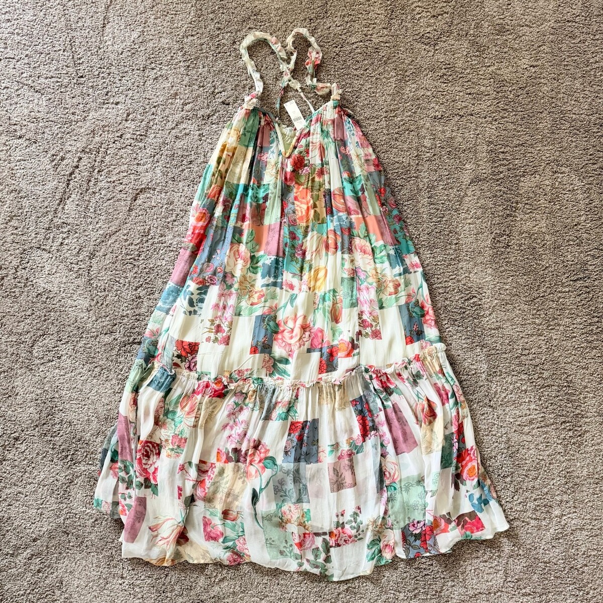 NEW Anthropologie Chiffon Shift Midi Dress Floral Sleeveless Beach Size XXSmall